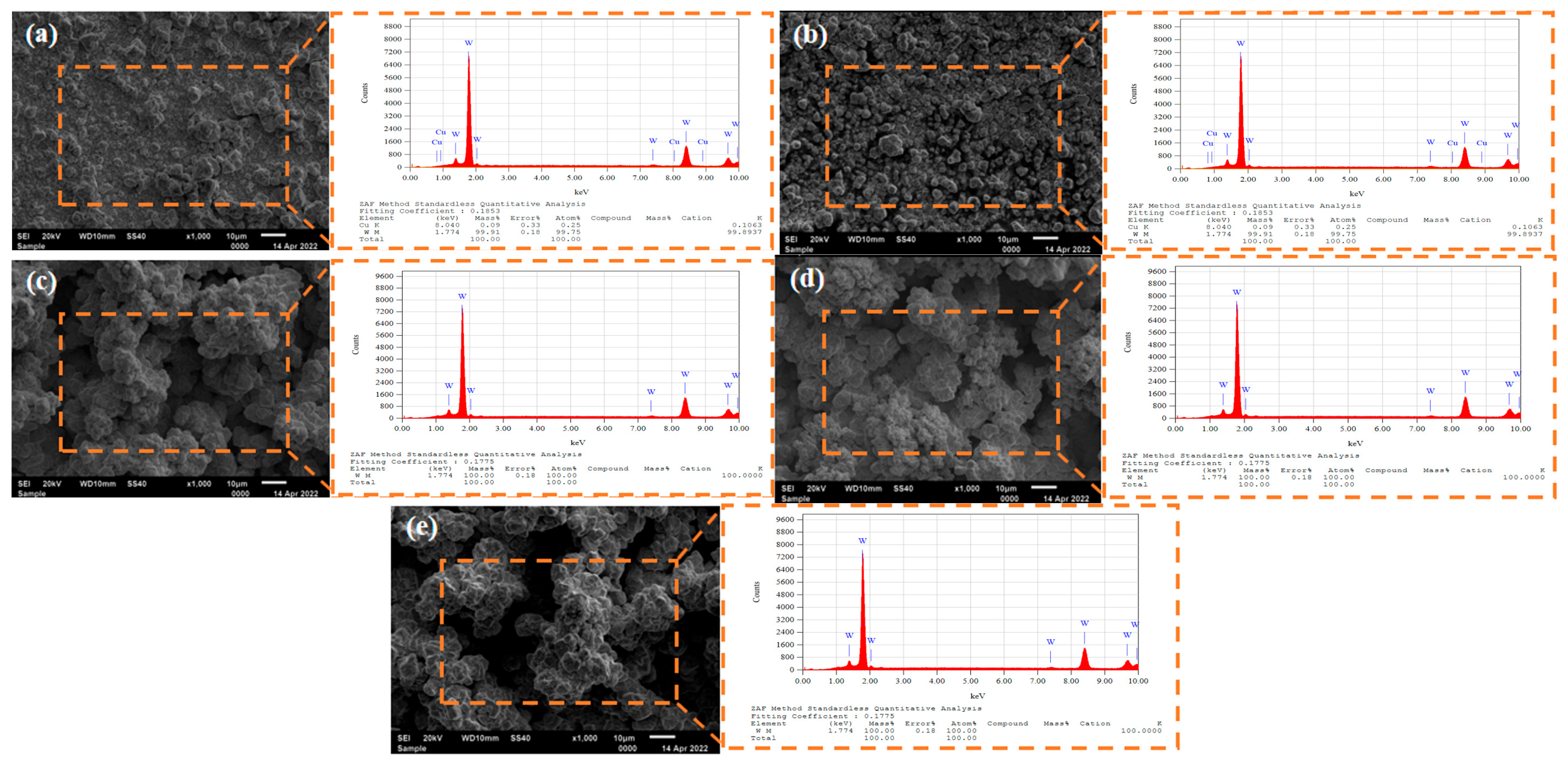 - Liu, Y.H.; Zhang, Y.C.; Li, H.L.; Liu, D.J. Analysis on Composition of Binary Molten Salt Na2WO4-WO3 and Study of Electrodepositing Tungsten Coatings. J. Mater. Her. 2015, 29, 34–36+45. [Google Scholar] [CrossRef]