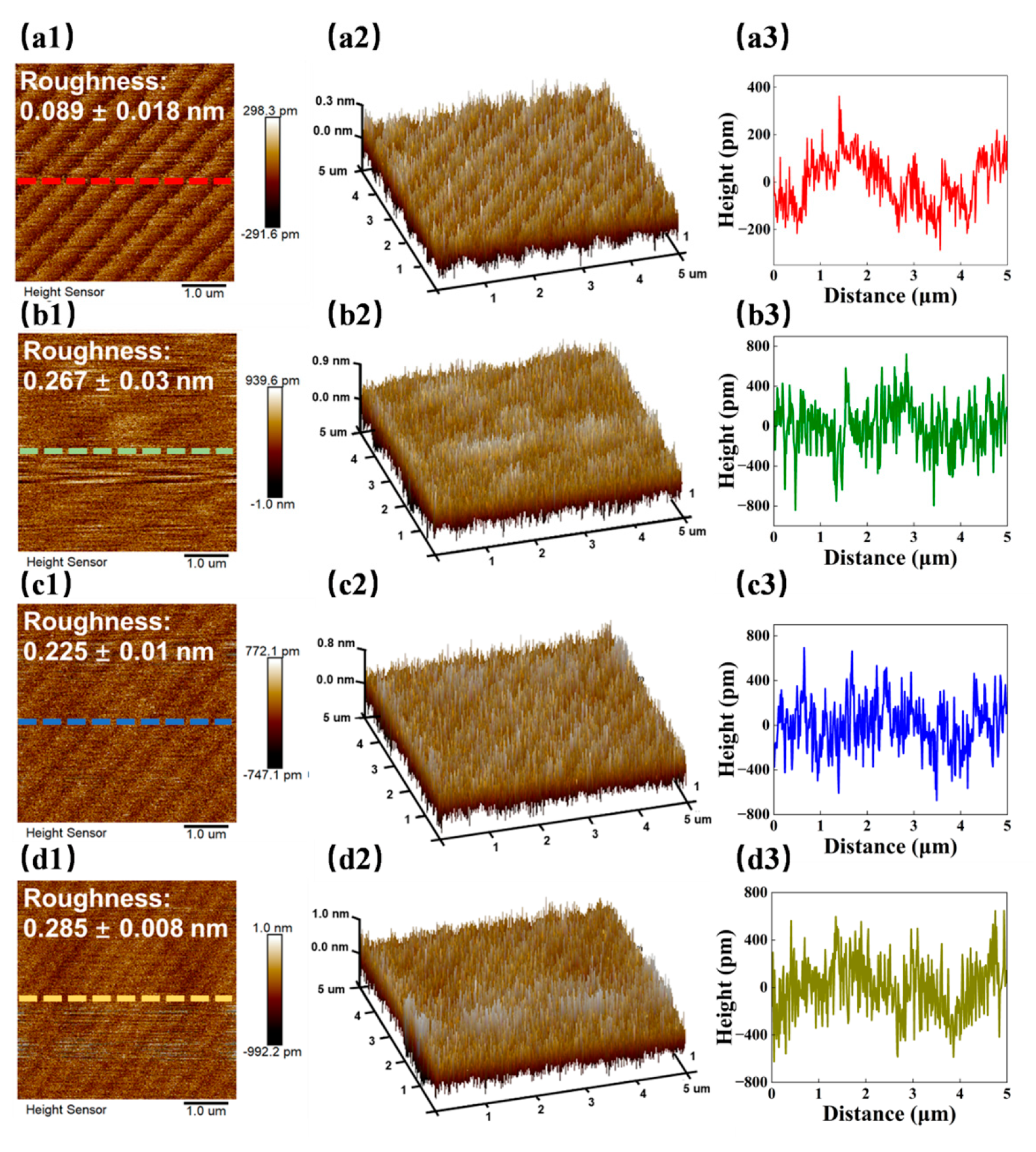 - Mao, W.; Cui, C.; Xiong, H.; Zhang, N.; Liu, S.; Dou, M.; Song, L.; Yang, D.; Pi, X. Surface defects in 4H-SiC: Properties, characterizations and passivation schemes. Semicond. Sci. Technol. 2023, 38, 073001. [Google Scholar] [CrossRef]