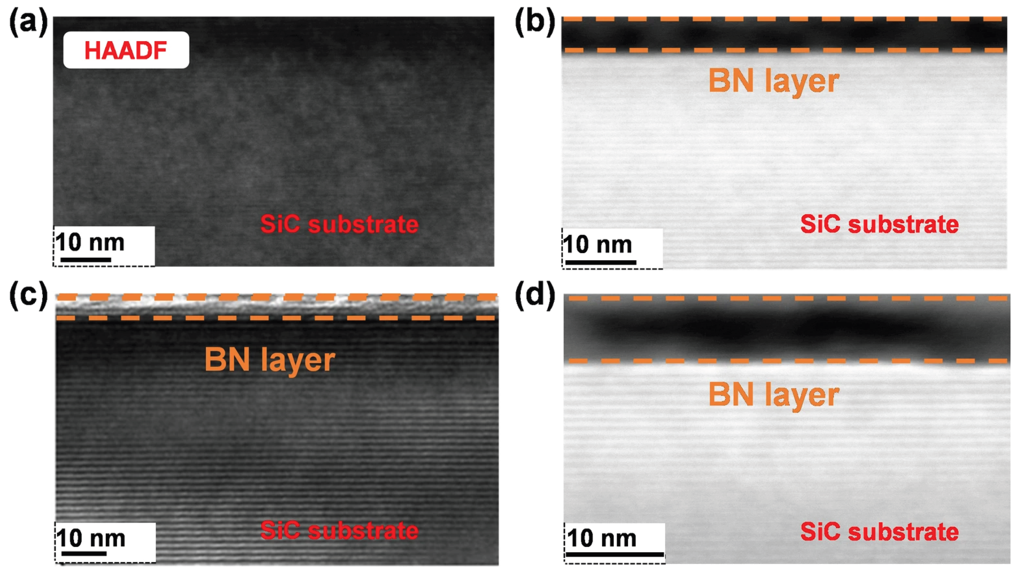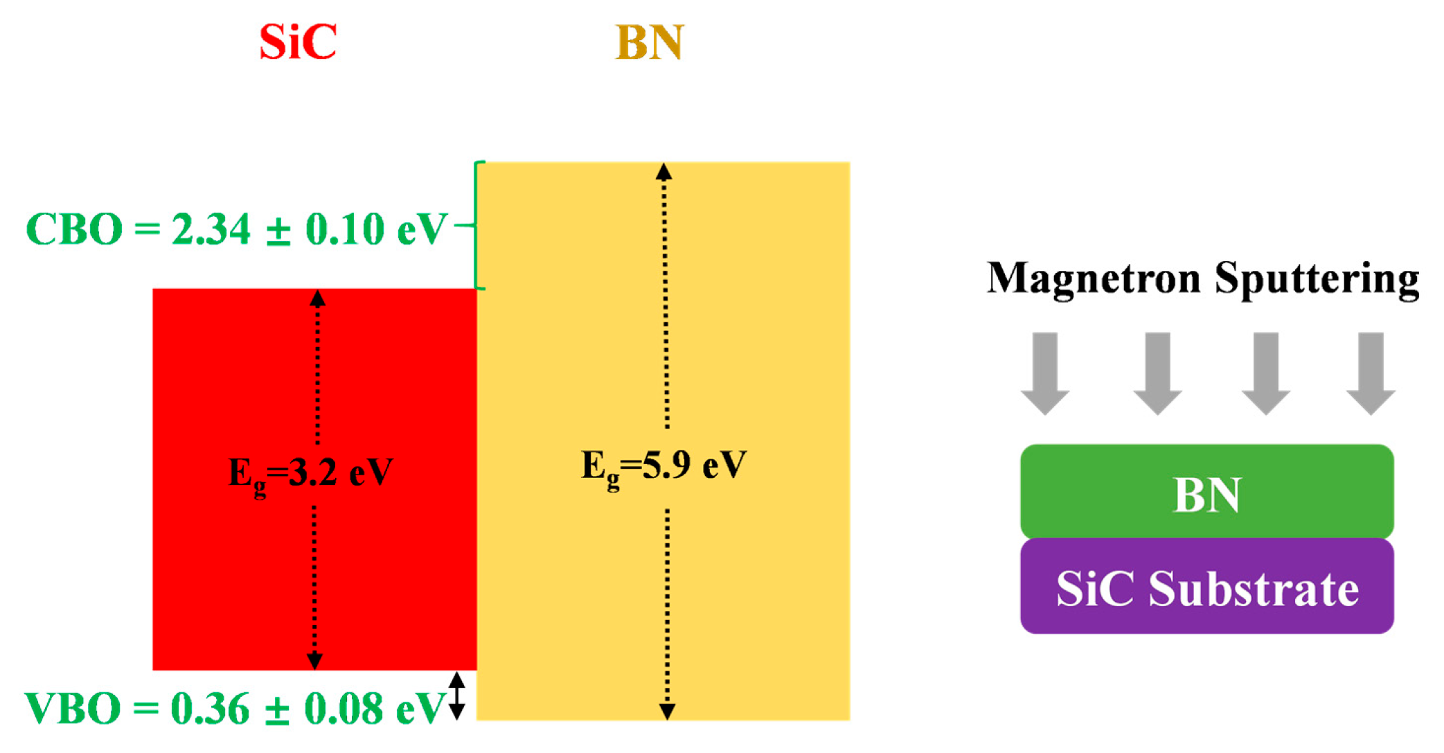 - Feng, B.; Chen, J.; Yang, Y.; Yang, M.; Wang, H.; Zhong, C.; Hao, Y.; Yang, J.; Jiao, J.; Yao, Y. Fabrication of BN thin films by chemical vapor deposition on 4H-SiC (0001) single-crystalline surfaces. Vacuum 2024, 222, 113009. [Google Scholar] [CrossRef]