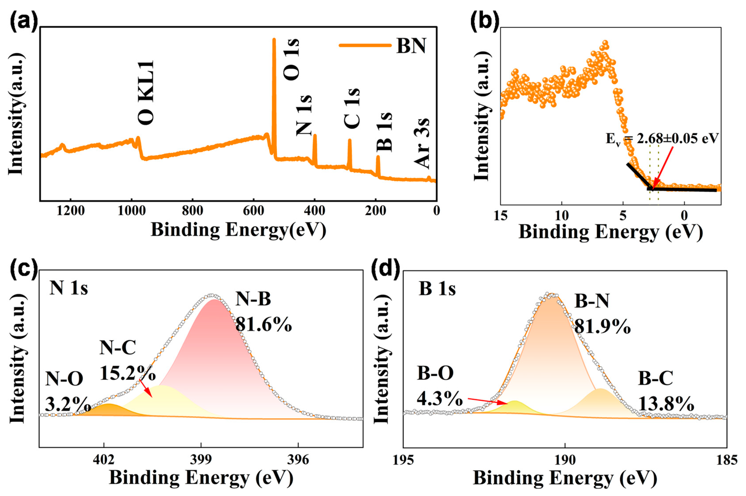 BN | 5.9 eV | 2.68 eV | 398.57 eV (N 1s) | 395.89 eV |