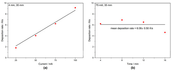 Deposition rates for different sputtering currents (a) and different sputter times (b).