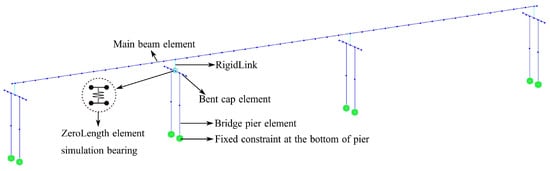 (4) The proposed seismic hazard–fragility–probability risk assessment system is applicable to various bridge structures and has high promotional and application value. While the specific risk probabilities are case-sensitive, the overall framework is generalizable to various bridge structures. Its application requires tailoring the finite element model and damage criteria to the specific structural system under investigation. However, there are still limitations: (a) omission of soil–structure interaction, potentially underestimate local risk; (b) lack of refined modeling bearing anchor bolts and stirrup spacing in plastic hinge regions, and unquantified impacts of construction quality variations; (c) only horizontal seismic motion input is used, ignoring multi-dimensional seismic motion effects on bearing shear deformation and pier flexural-shear failure; and (d) the validity of the finite element model relies on well-established modeling techniques rather than direct validation against experimental data from a physically identical bridge test. While the constitutive models and element formulations used have been extensively validated in the literature, future work should include a comprehensive experimental comparison to further corroborate the findings.