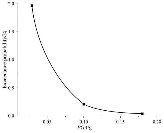 According to the results of seismic hazard assessment, the PGA values with different exceedance probabilities for the research site over the next 1 year are shown in Table 16.