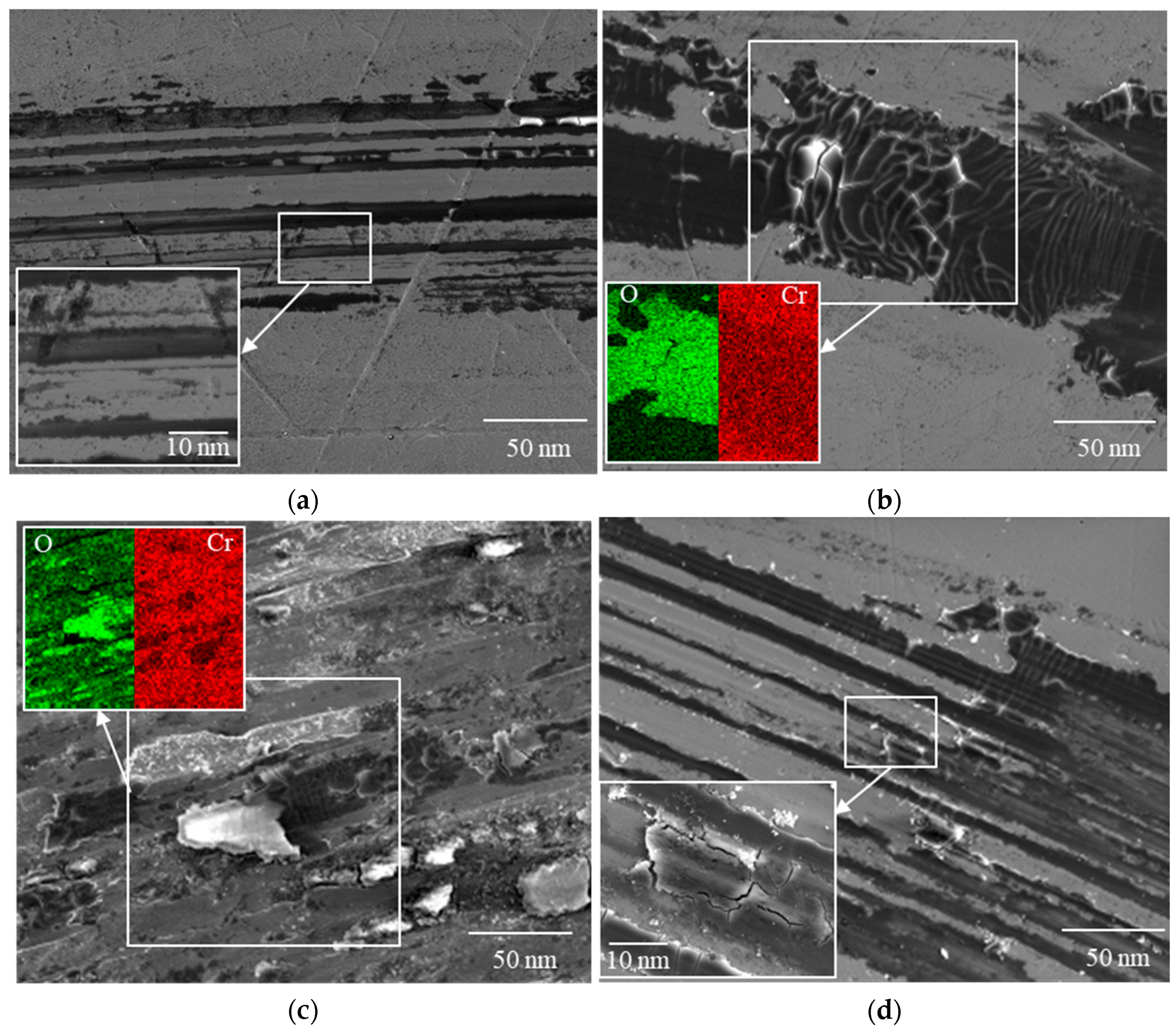 - Liu, Y.; Yang, Y.; Liu, X.; Zheng, J.; Zhang, S. Tribocorrosion of CrN coatings on different steel substrates. Surf. Coat. Technol. 2024, 484, 130829. [Google Scholar] [CrossRef]
