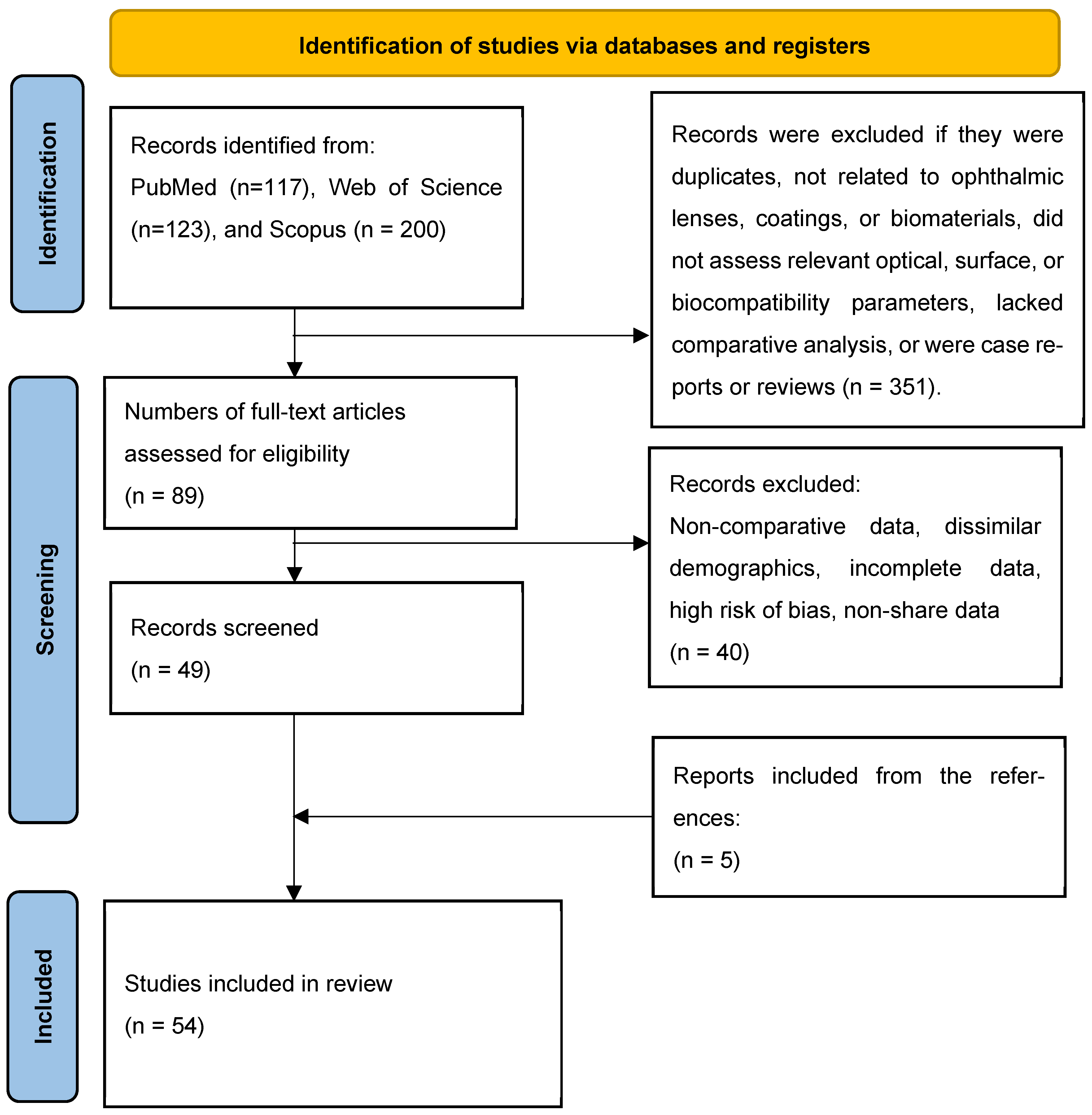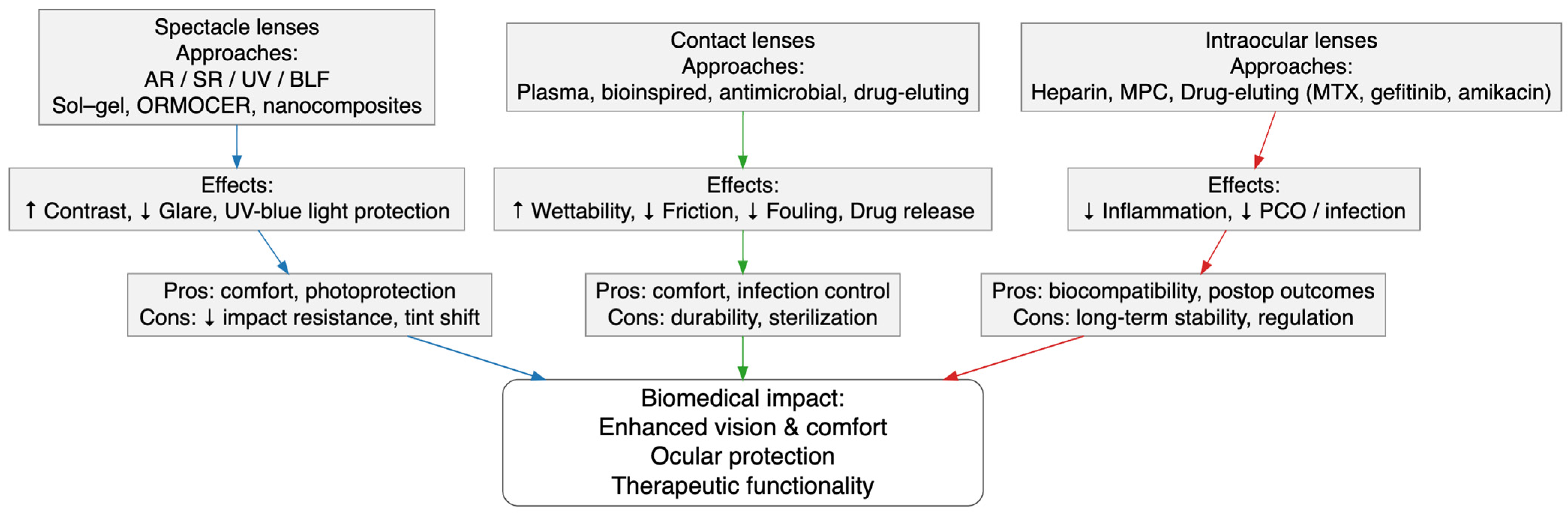 - Martinez-Perez, C.; Oliveira, A.P. Meta-Analysis of Materials and Treatments Used in Ophthalmic Lenses: Implications for Lens Characteristics. Materials 2024, 17, 5949. [Google Scholar] [CrossRef]