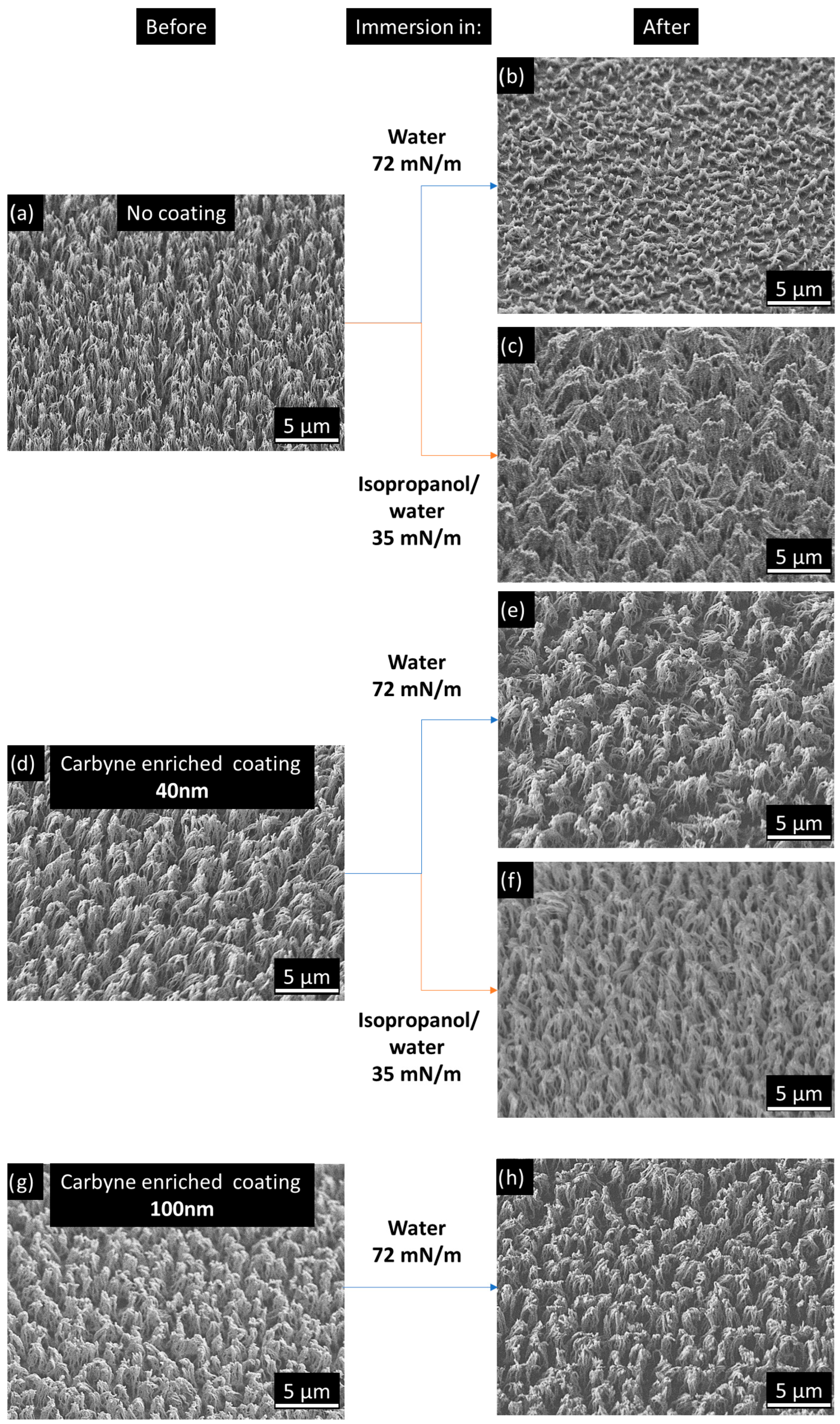 Nioras, D.; Kefallinou, D.; Ioannou, D.; Panes-Ruiz, L.A.; Ibarlucea, B.; Cuniberti, G.; Lan, T.; Tserepi, A.; Gogolides, E. Enhanced Mechanical Durability of Polymeric Nanowires via Carbyne-Enriched Plasma Coatings for Bactericidal Action. Coatings 2025, 15, 1247. https://doi.org/10.3390/coatings15111247