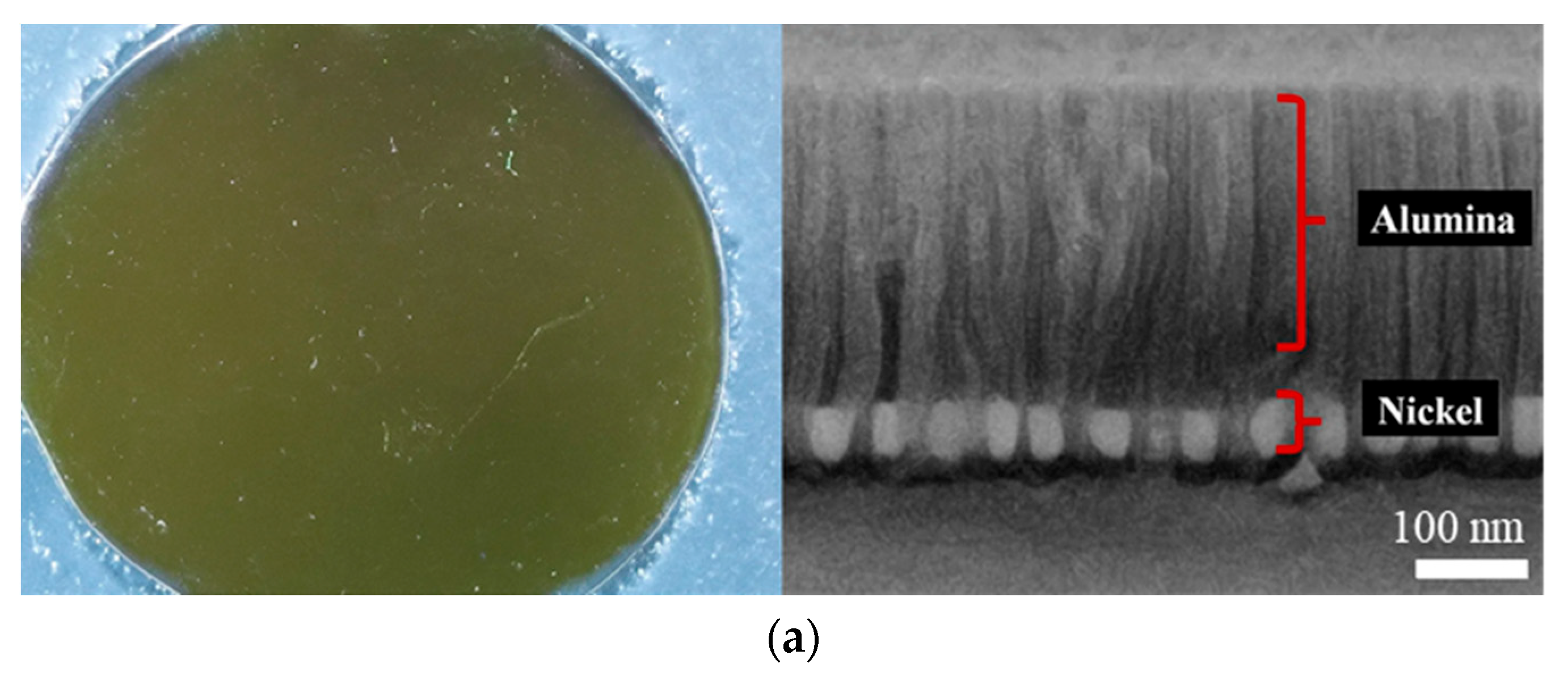 - Lee, K.; Kim, H.; Kim, J.H.; Choi, D. Structural color and near-infrared tunability of ruthenium-coated anodic aluminum oxide by atomic layer deposition. Scr. Mater. 2020, 187, 125–129. [Google Scholar] [CrossRef]