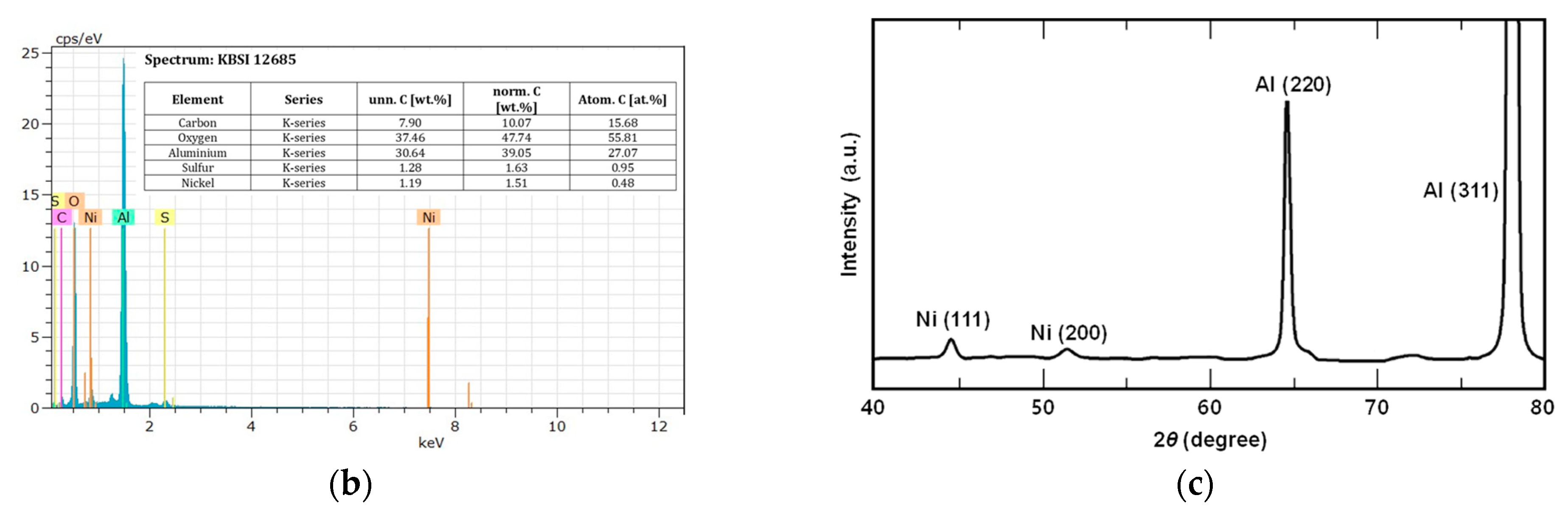 - Keller, F.; Hunter, M.S.; Robinson, D.L. Structural Features of Oxide Coatings on Aluminum. J. Electrochem. Soc. 1953, 100, 411–419. [Google Scholar] [CrossRef]