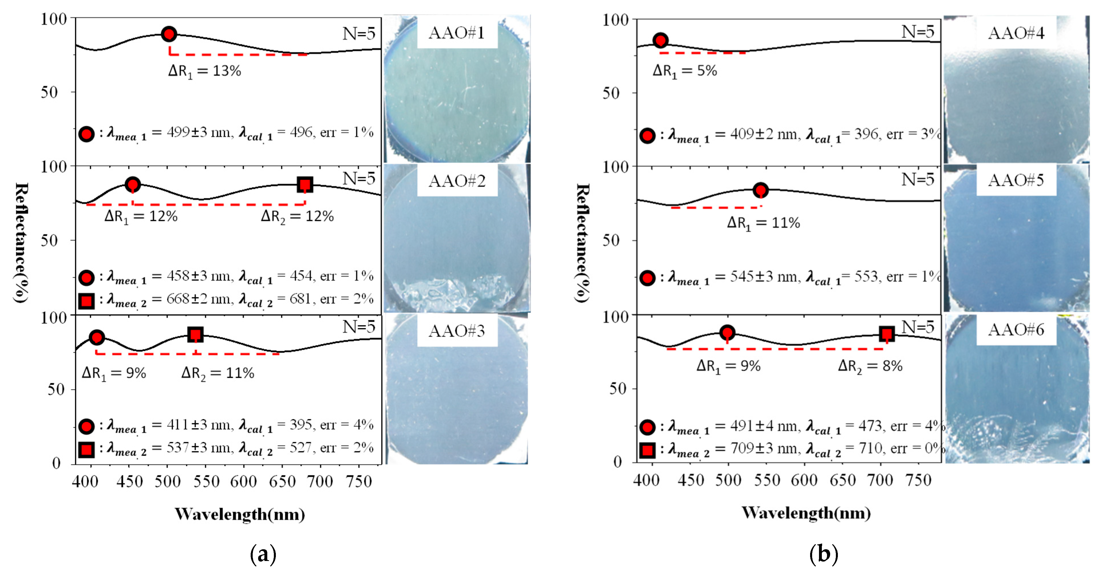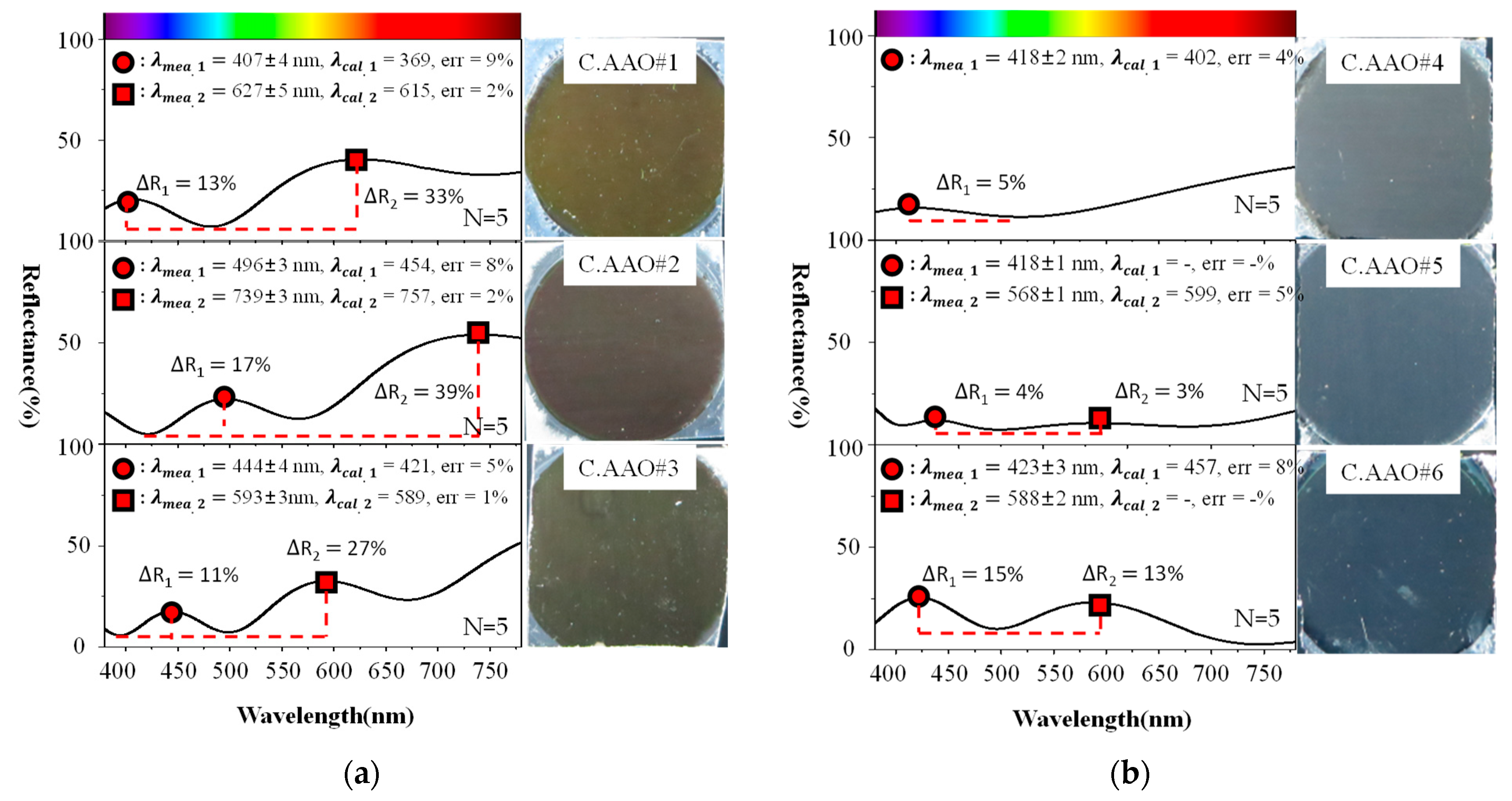 3.2. Characteristics of the Reflected Light in Composite AAO Films