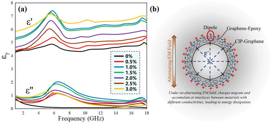 (a) Complex permittivity curves of samples with different graphene contents; (b) Schematic diagram of interface polarization.