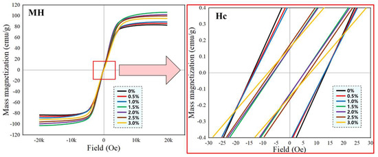 Hysteresis loops of samples with different graphene contents.