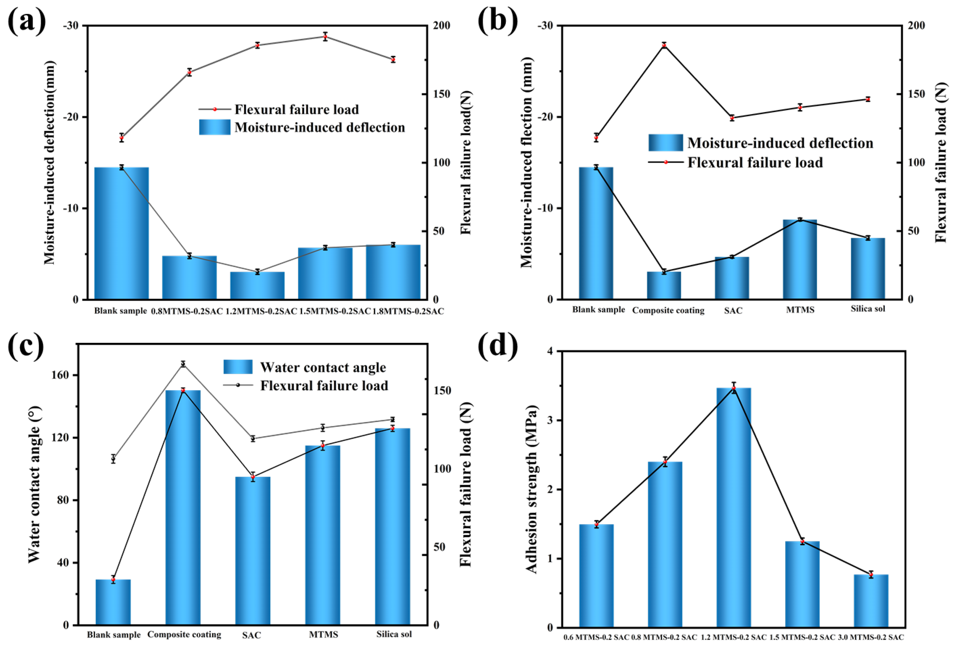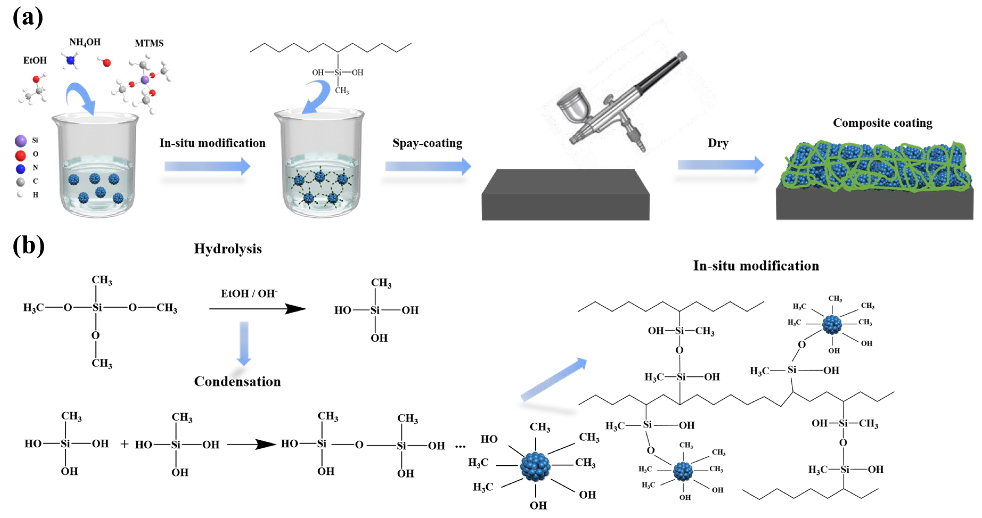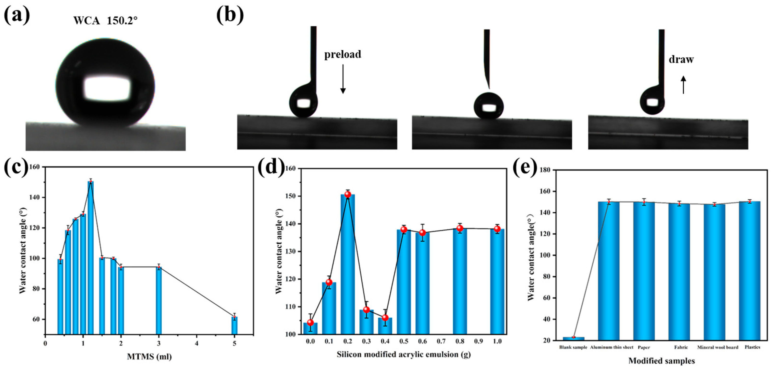 - Xu, T.L.; Zhang, H.Y.; Hess, D.W.; Chai, X.J.; Xu, K.M.; Yang, X.H.; Xie, L.K. A fluorine-free approach for fabricating superhydrophobic coatings on bamboo using methyltrimethoxysilane (MTMS) under alkaline conditions. Prog. Org. Coat. 2025, 203, 109170. [Google Scholar] [CrossRef]