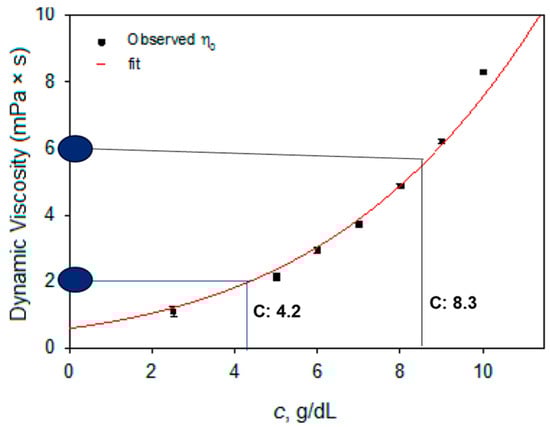 Concentration versus dynamic viscosity that corresponds to specific dynamic viscosity.
