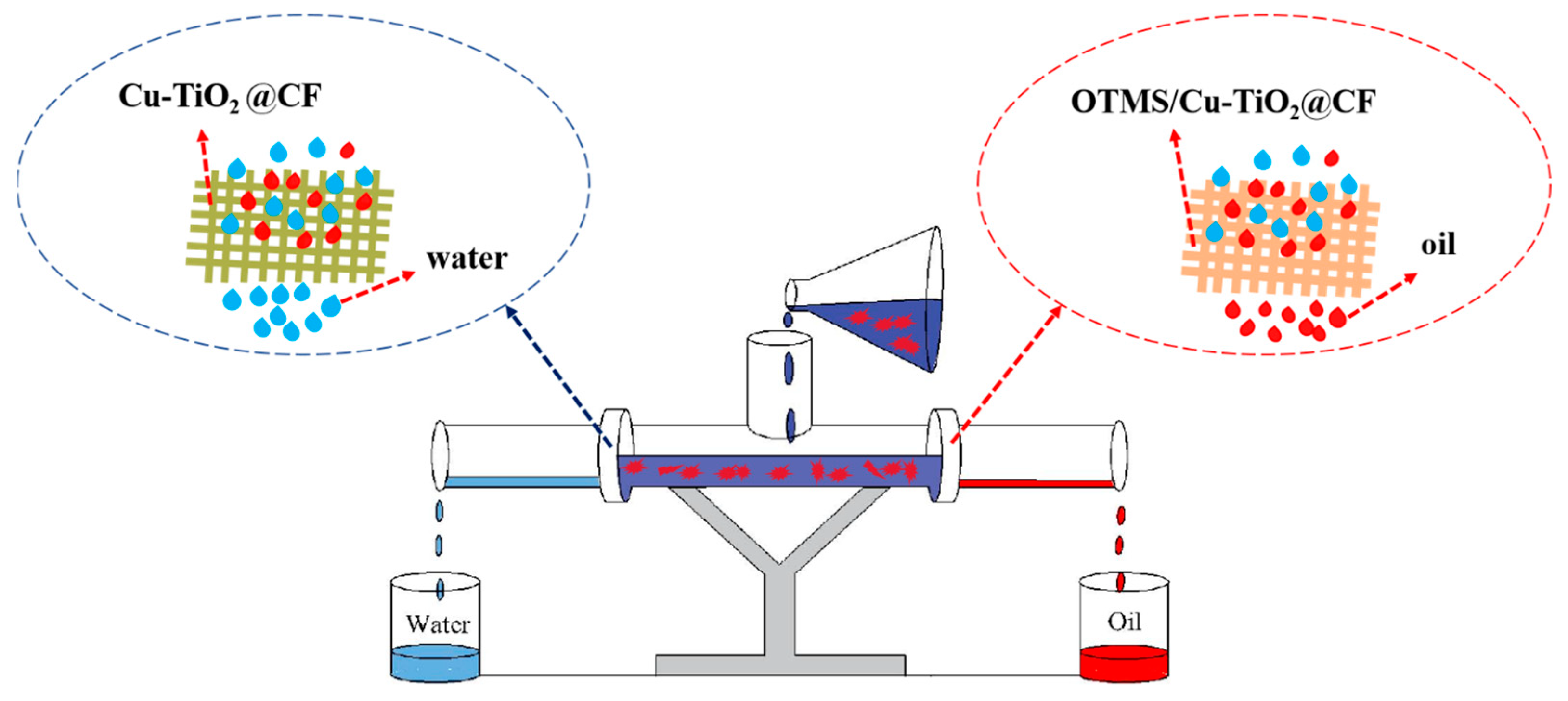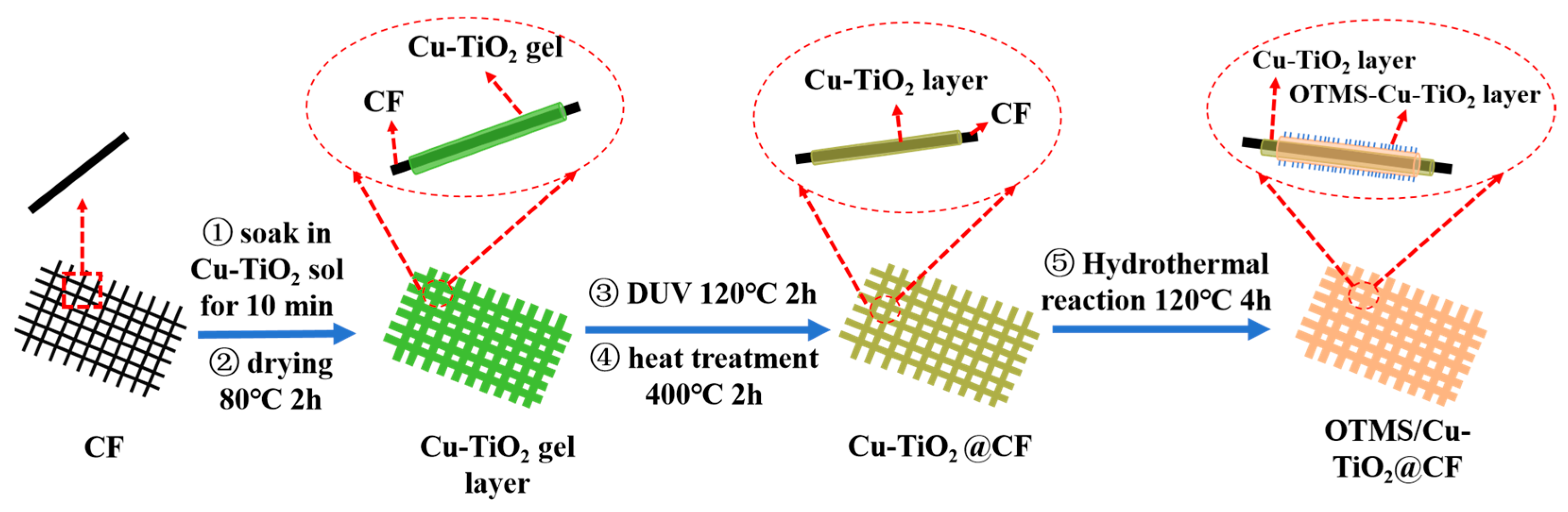 2.4. Preparation of OTMS/Cu-TiO2@CF Membranes