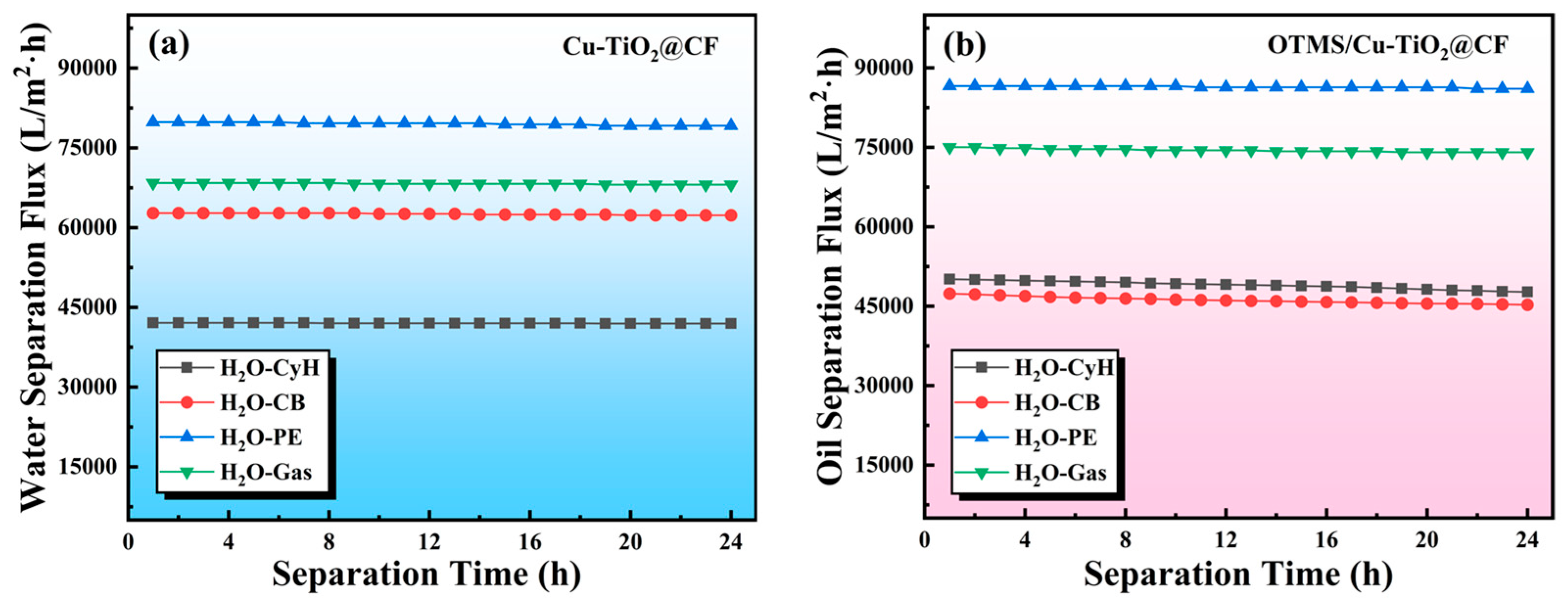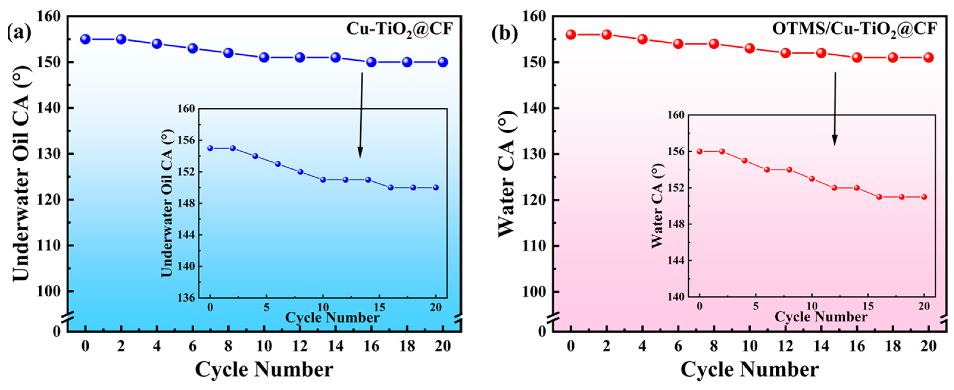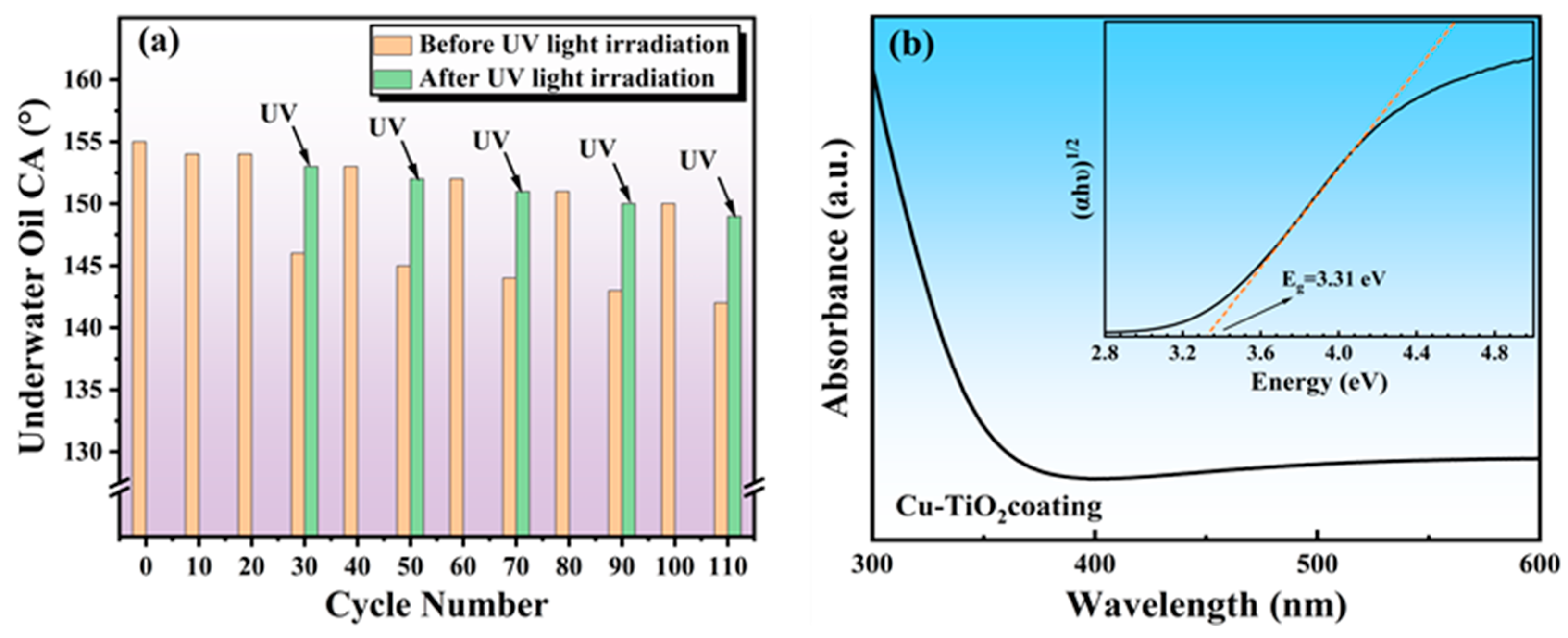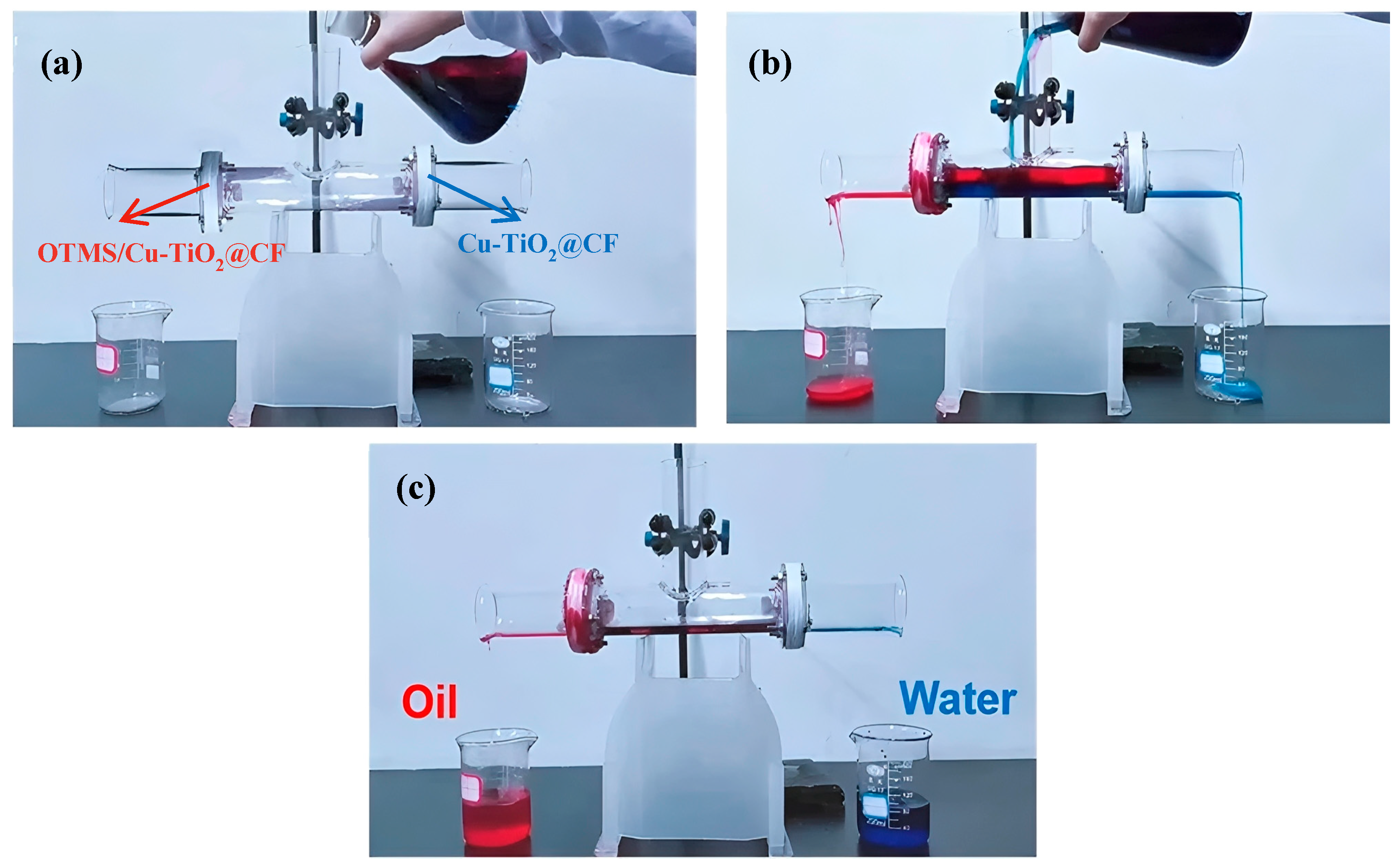 APA StyleChen, Y., Chen, Y., Li, X., Li, R., Lei, G., Jia, Z., Liu, D., & Duan, Z. (2025). Superwettable Carbon Fiber Membranes Functionalized with Cu-TiO2: High-Performance Oil–Water Separation and Sustainable Reusability. Coatings, 15(11), 1273. https://doi.org/10.3390/coatings15111273