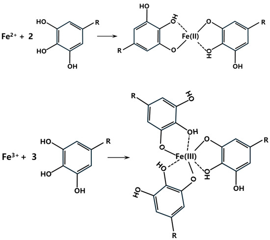 The chemical mechanism of chelation reactions between GA and Fe2+ and Fe3+ [29].