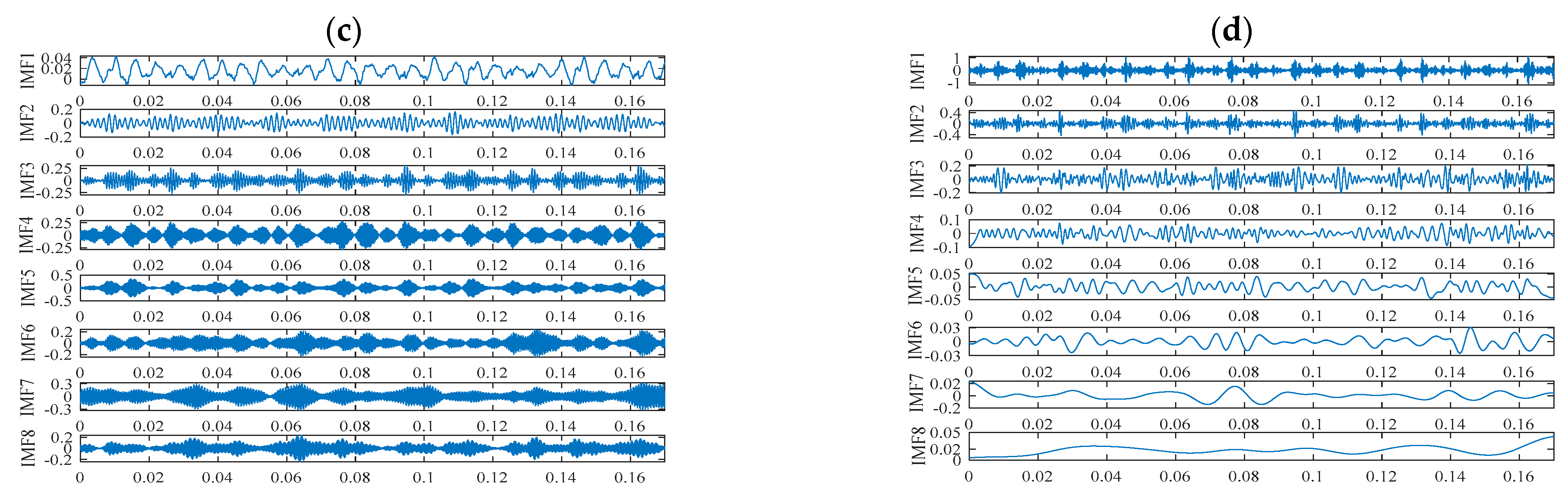 Figure 12b), with an error of 2.04%. This represents an error reduction of approximately 43.1% [(2.04–1.16%)/2.04% × 100%]. Additionally, in terms of computational efficiency, the FCEEMD decomposition time was 0.040238 s (from
