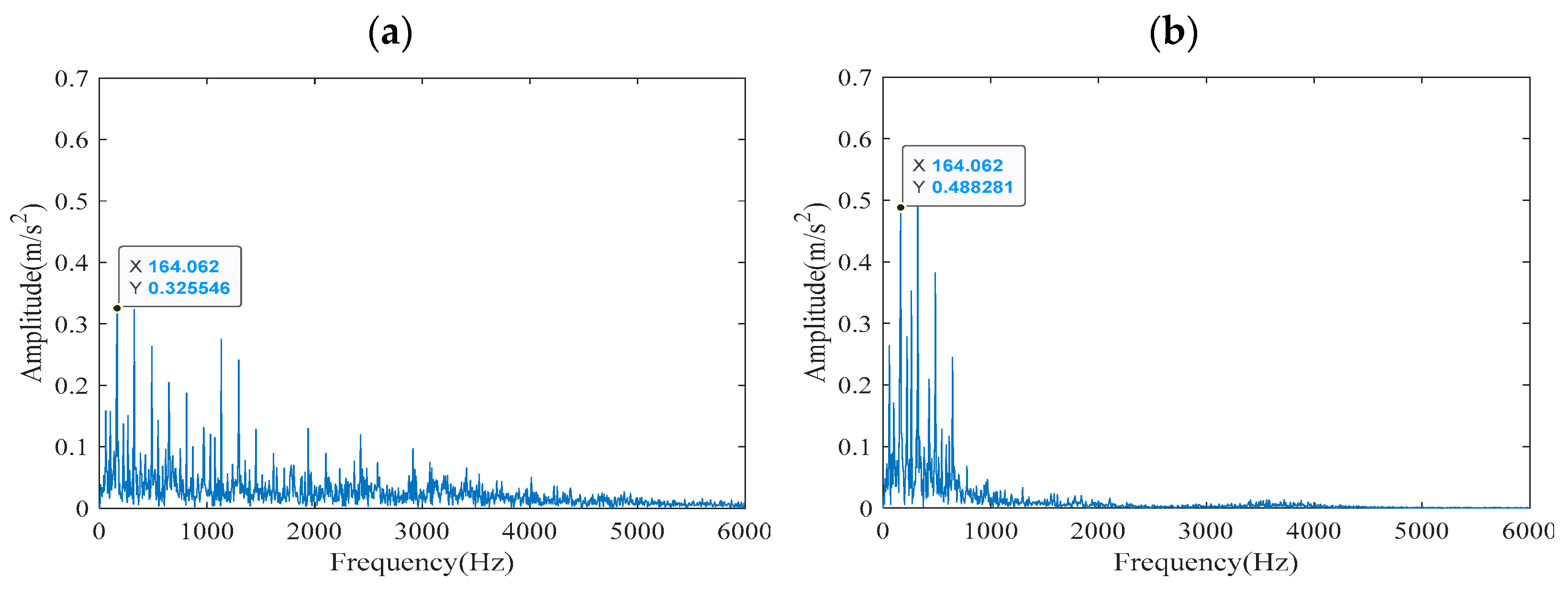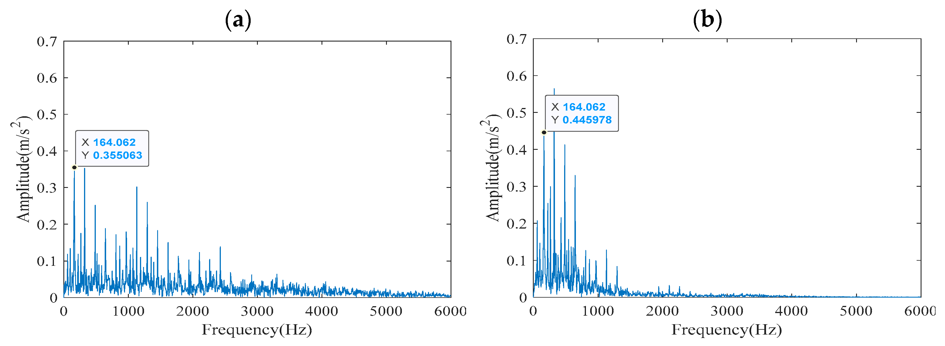 38] is shown in Equations (32)–(34). In accordance with the theoretical formula for the fault feature frequency and the parameters given in