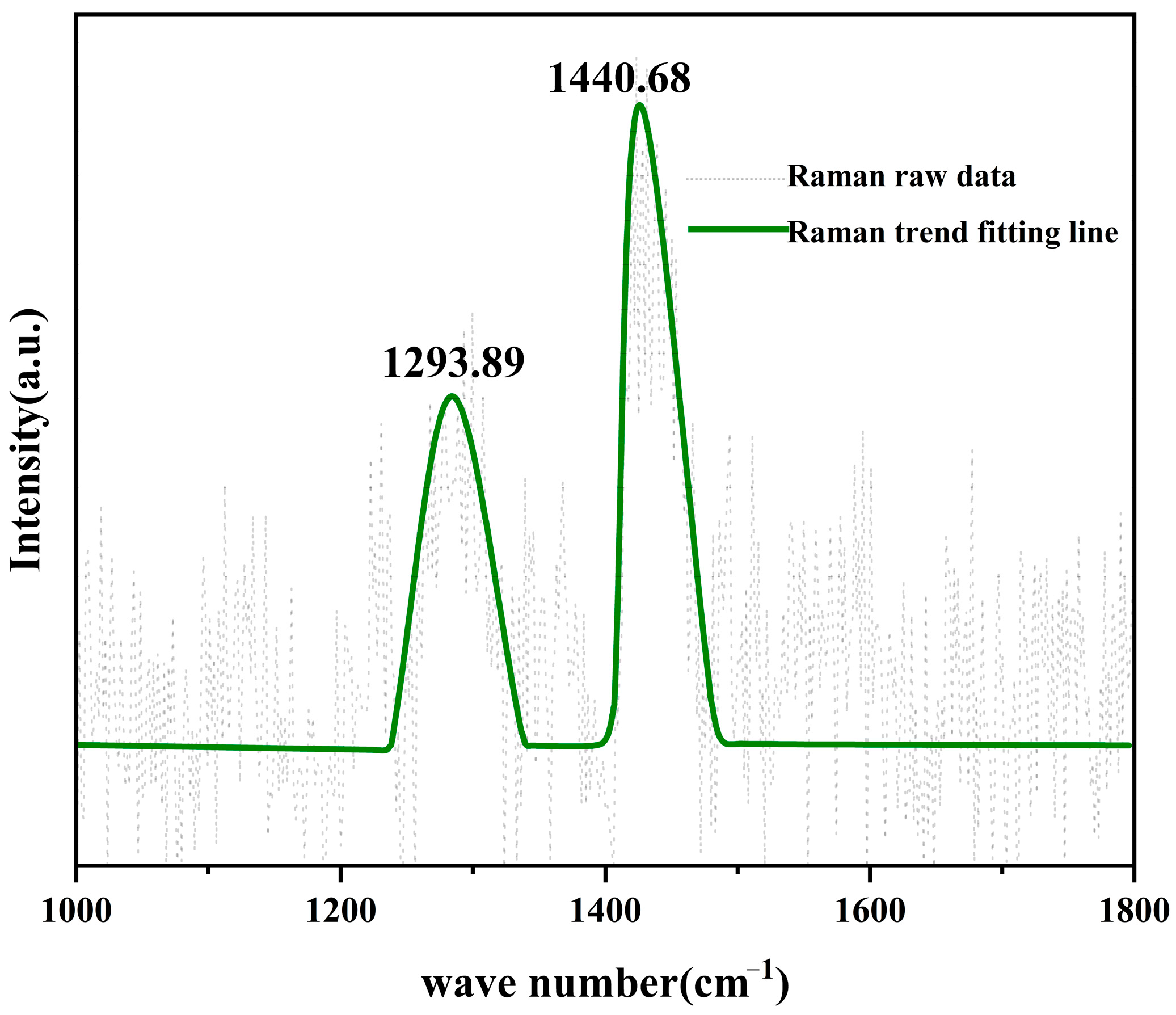 Similarly, upon the formation of a continuous WC shell, if carbon diffusion is impeded, the growth of the coating, as described in Equations (1) and (2), would terminate. The thickness of the WC coating on the (111) face of diamond synthesized at 1300 °C for one hour was measured to be 1.98 ± 0.10 μm; however, this thickness increased to 4.38 ± 0.19 μm when the reaction time was extended to two hours. Raman spectroscopy analysis of a representative WC coating on diamond is presented in Figure 8. The peaks observed at 1293.89 cm−1 and 1440.68 cm−1 correspond to the D and G bands of disordered carbon, respectively [29]. The presence of amorphous carbon on the surface of the coating suggests that WC does not act as a barrier to carbon diffusion at elevated temperatures, thereby enabling continuous thickening of the coating over time.