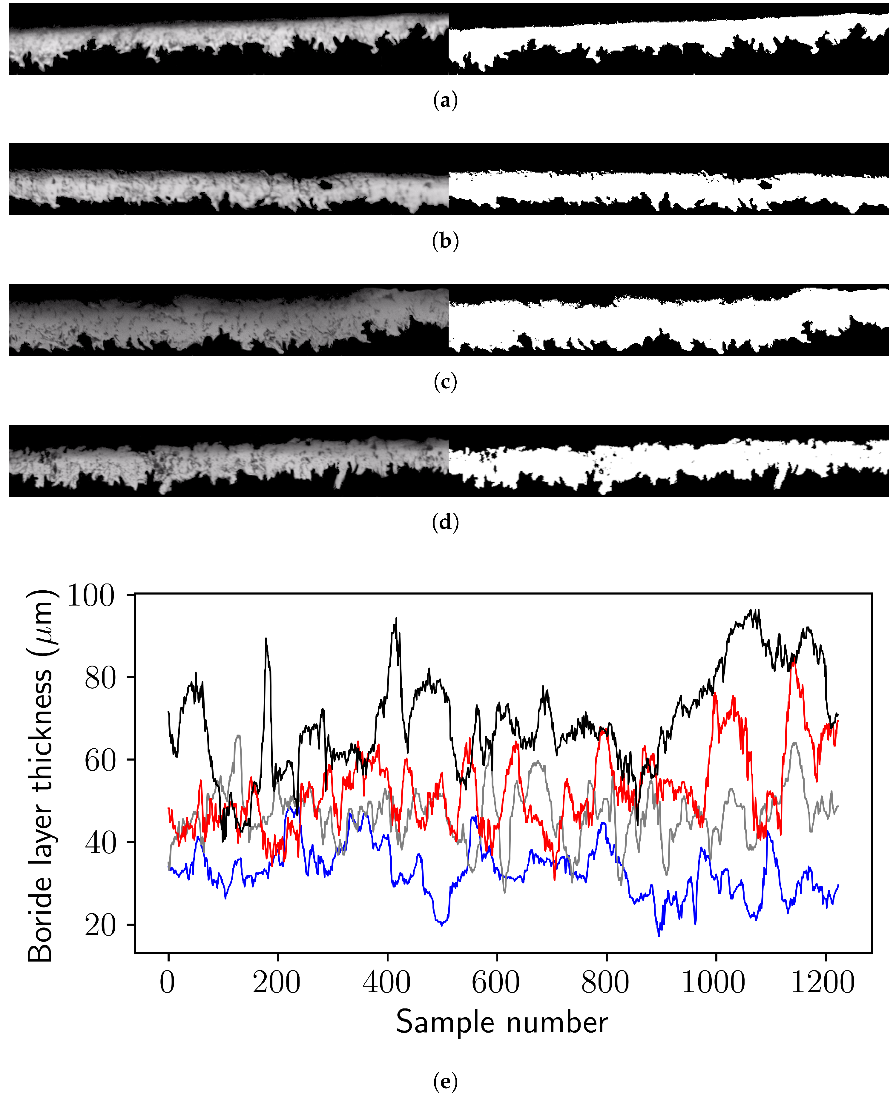 - Campos-Silva, I.; Balankin, A.S.; Sierra, A.H.; López-Perrusquia, N.; Escobar-Galindo, R.; Morales-Matamoros, D. Characterization of rough interfaces obtained by boriding. Appl. Surf. Sci. 2008, 255, 2596–2602. [Google Scholar] [CrossRef]