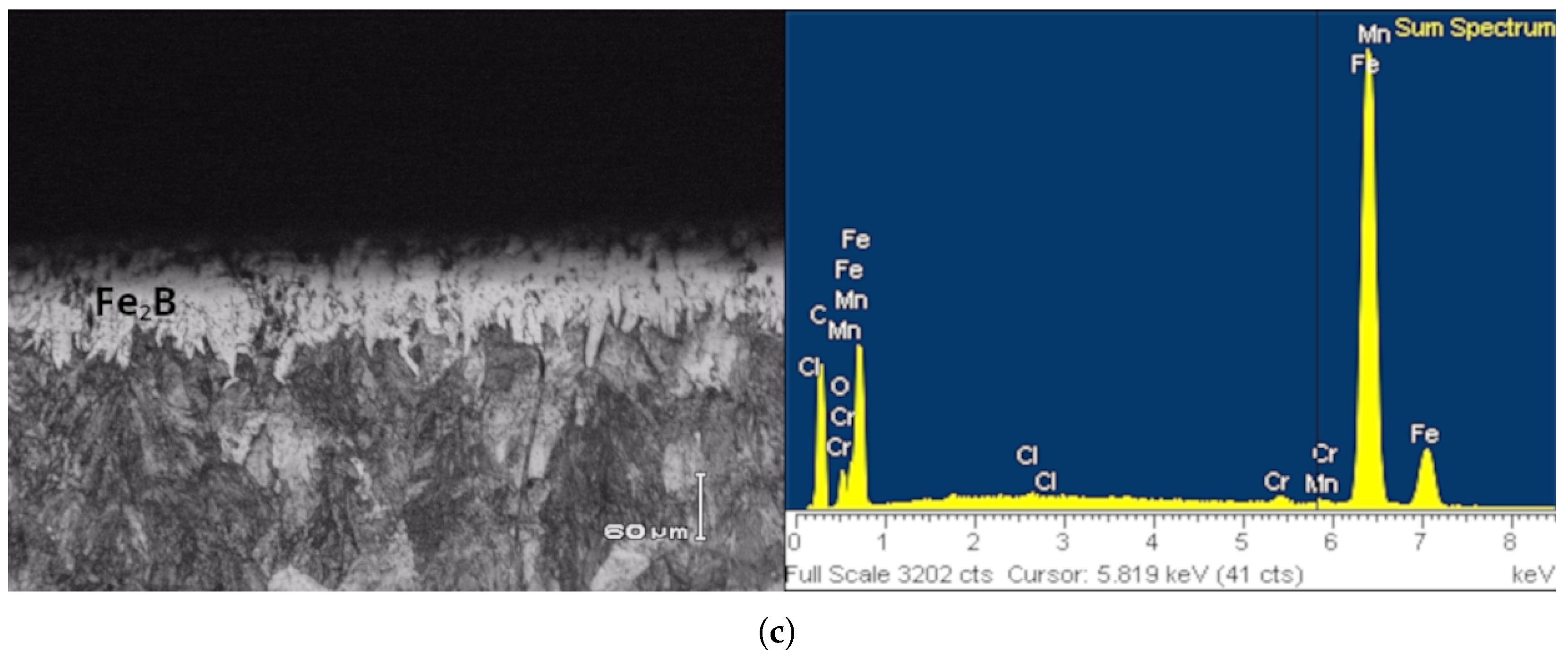 - Fuentes, L.S.; Perrusquia, N.L.; Espinosa, M.C.E.; Máximo, D.V.M.; de la Mora Ramírez, T.; Domínguez, V.H.O.; Ruiz, M.A.D. Adhesion Characterization on AISI 9254 steel boriding. Microsc. Microanal. 2024, 30, 1273–1275. [Google Scholar] [CrossRef]