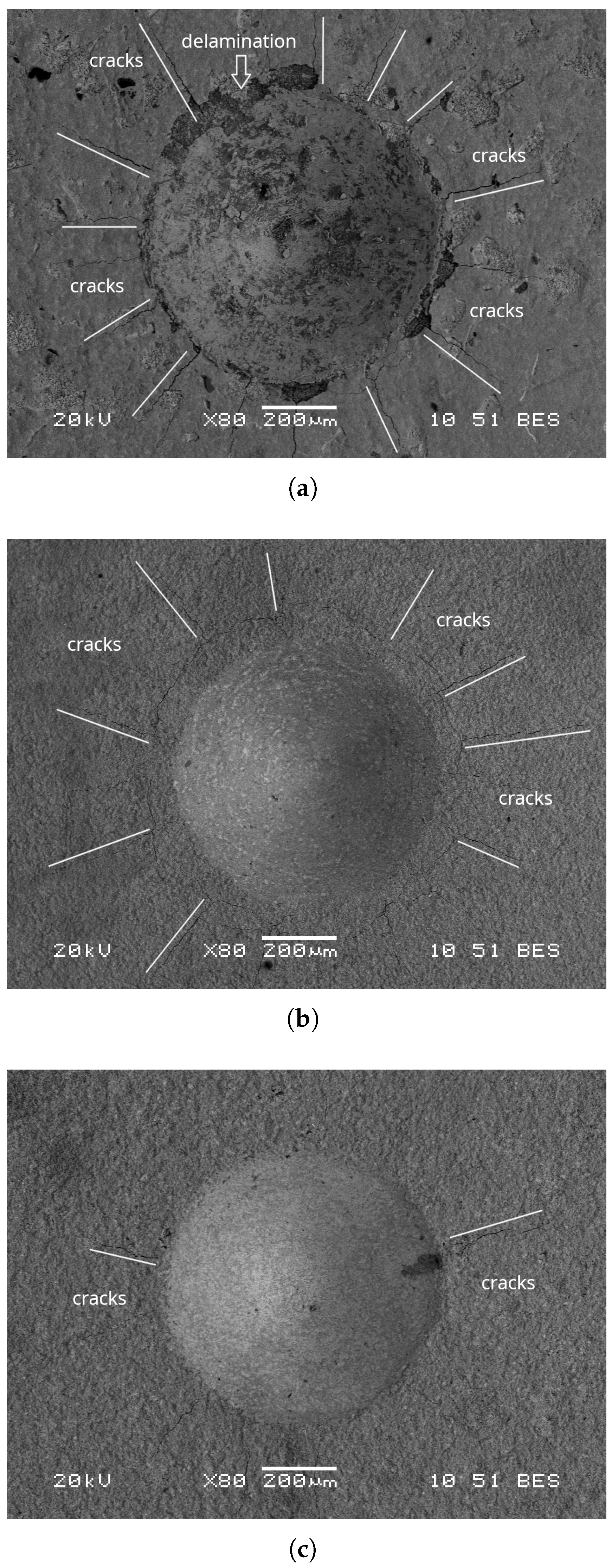 - Campos, I.; Ramírez, G.; VillaVelázquez, C.; Figueroa, U.; Rodríguez, G. Study of microcracks morphology produced by Vickers indentation on AISI 1045 borided steels. Mater. Sci. Eng. A 2008, 475, 285–292. [Google Scholar] [CrossRef]