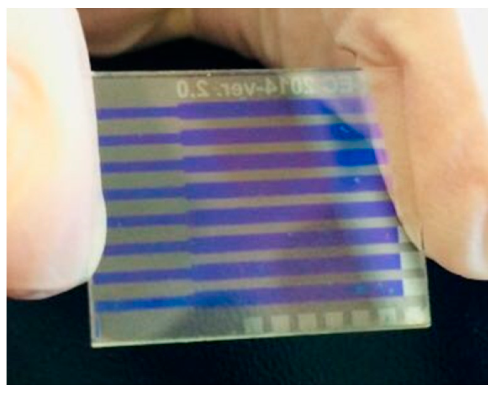 3.4. Line-Shaped ITO Electrodes Covered with Polyimide Thickness Measurement