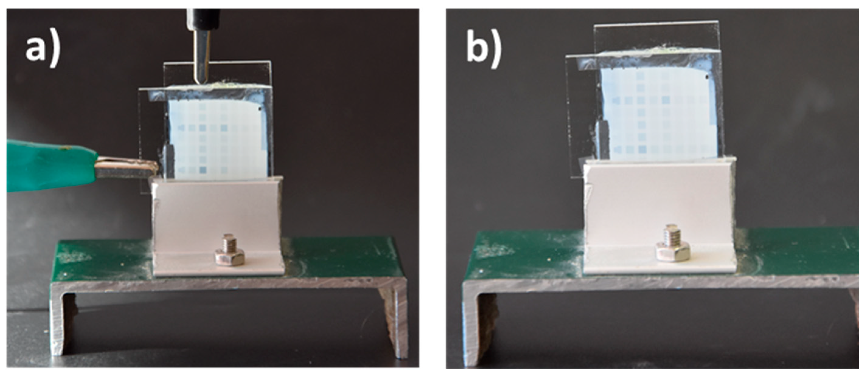 3.2. Manufacturing Passive PDLC Film Matrixes: Digital Memory PDLC Devices Based on Electrical Writing Digital Information