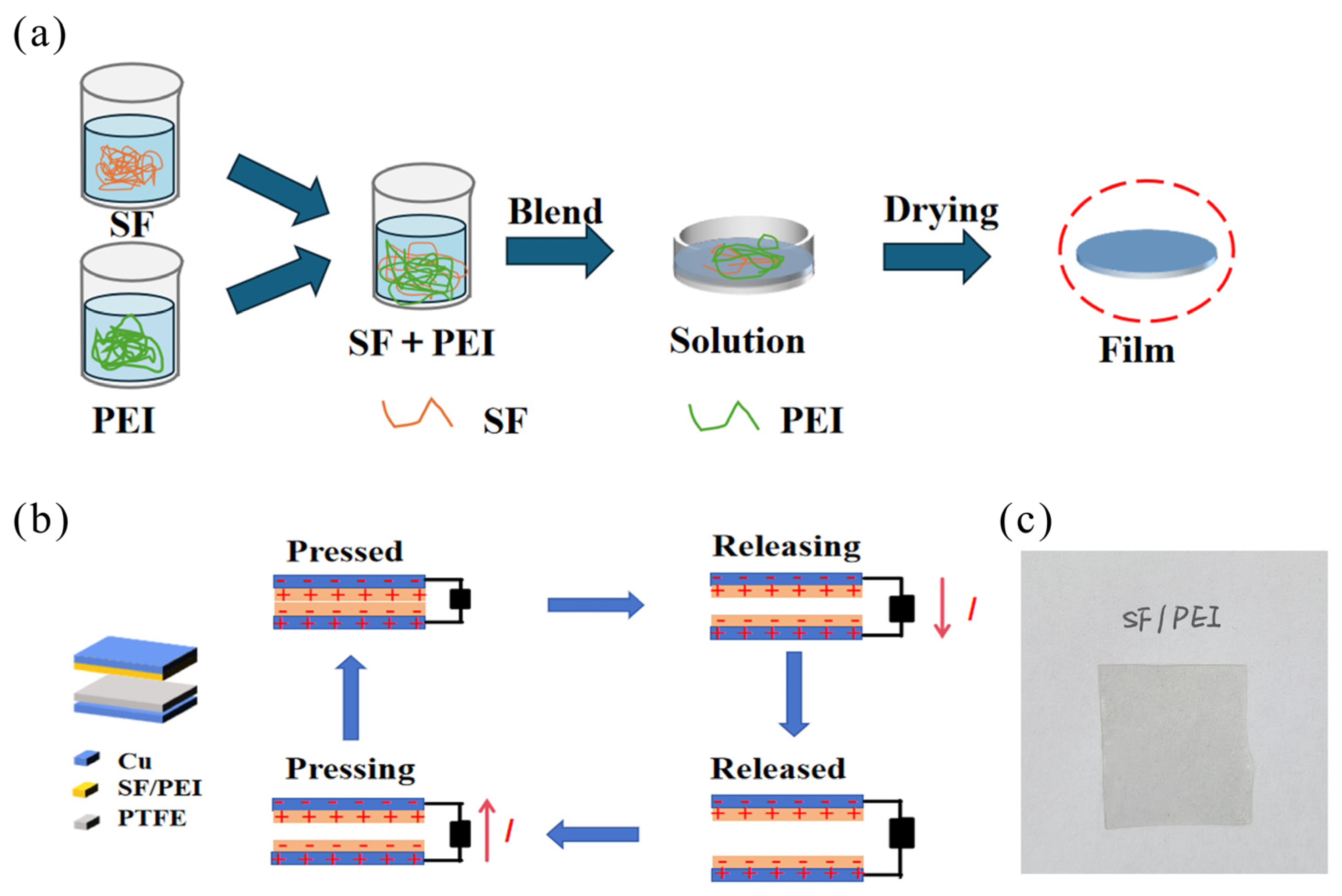 Environmentally Friendly Silk Fibroin/Polyethyleneimine High-Performance Triboelectric Nanogenerator for Energy Harvesting and Self-Powered Sensing