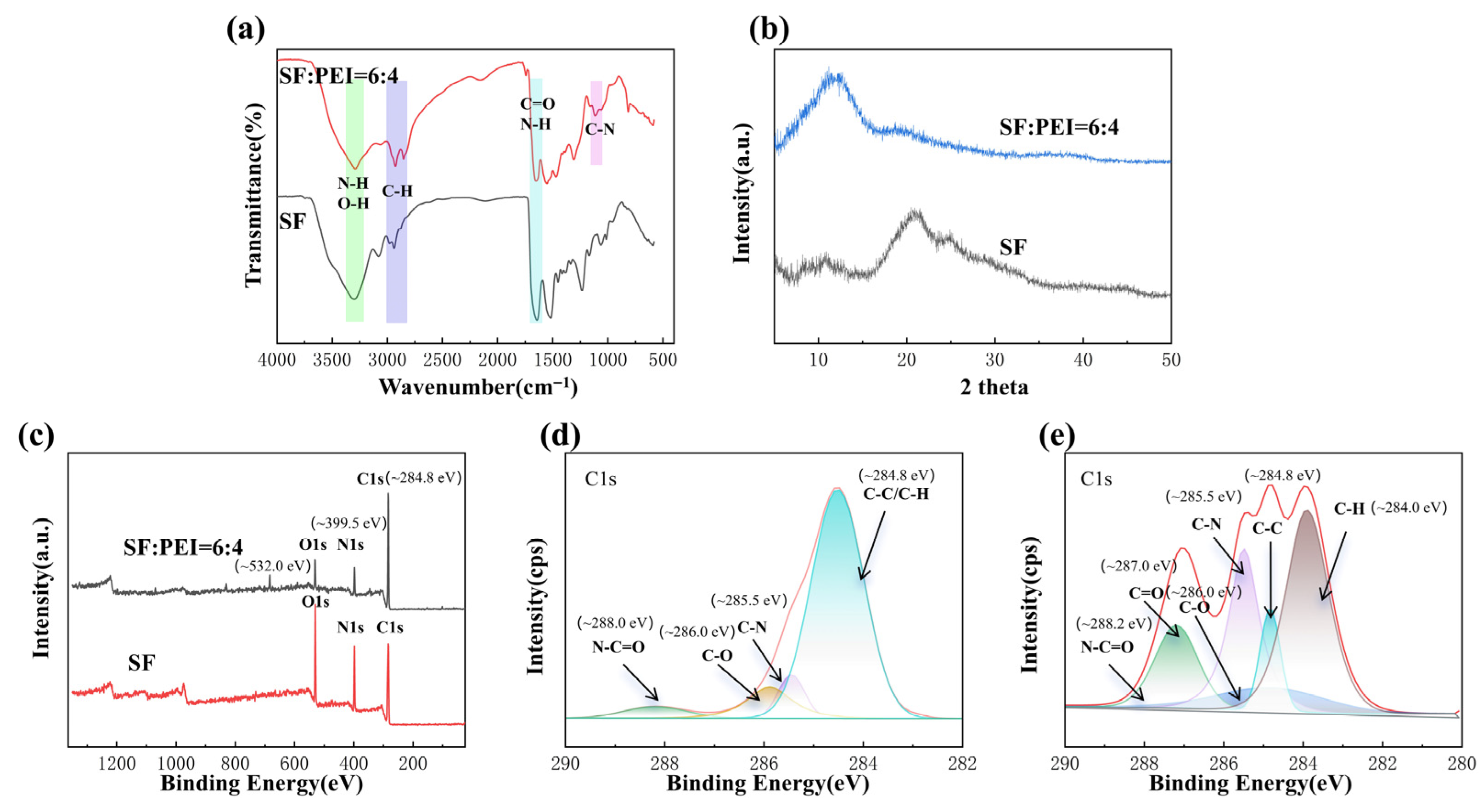 3.2. Microscopic Morphology and Structural Characterization of SF/PEI Films