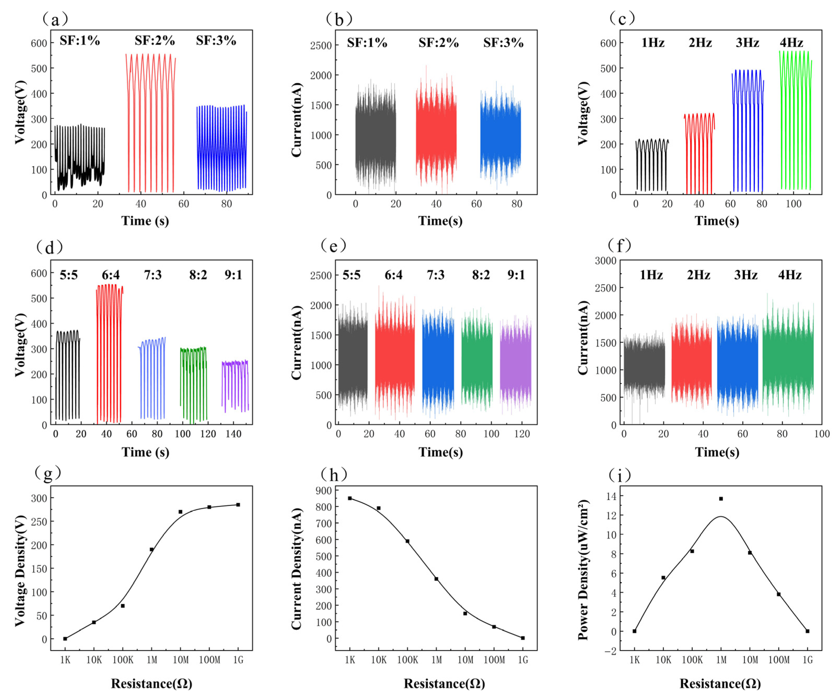 3.3. Output Performance Analysis of SF/PEI-TENG