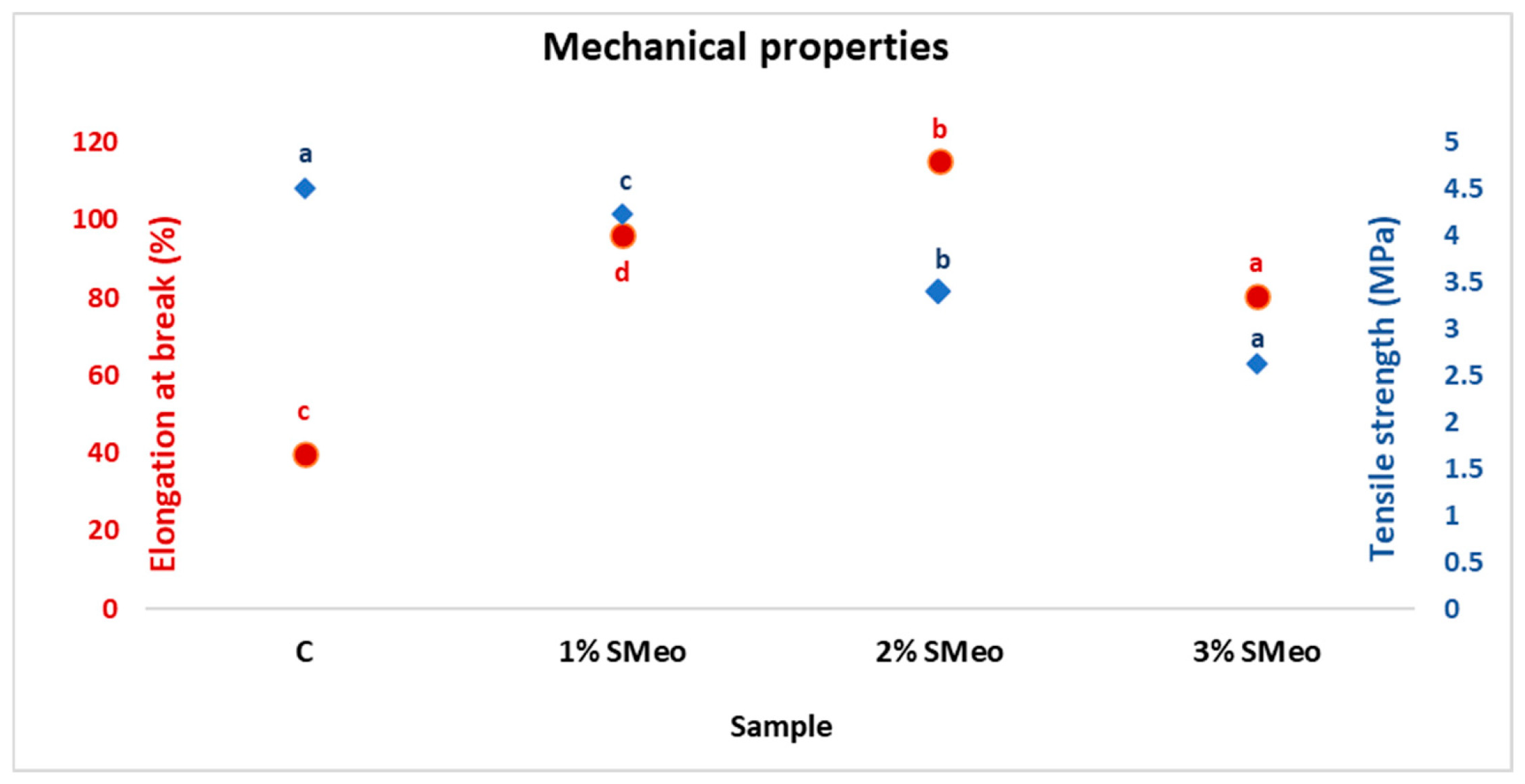 | 1% SMeo | 0.183 ± 0.002 a | 15.46 ± 1.55 bc | 14.12 ± 1.09 ab | 73.89 ± 0.47 a | 4.24 ± 0.50 a | 6.52 ± 0.26 a |