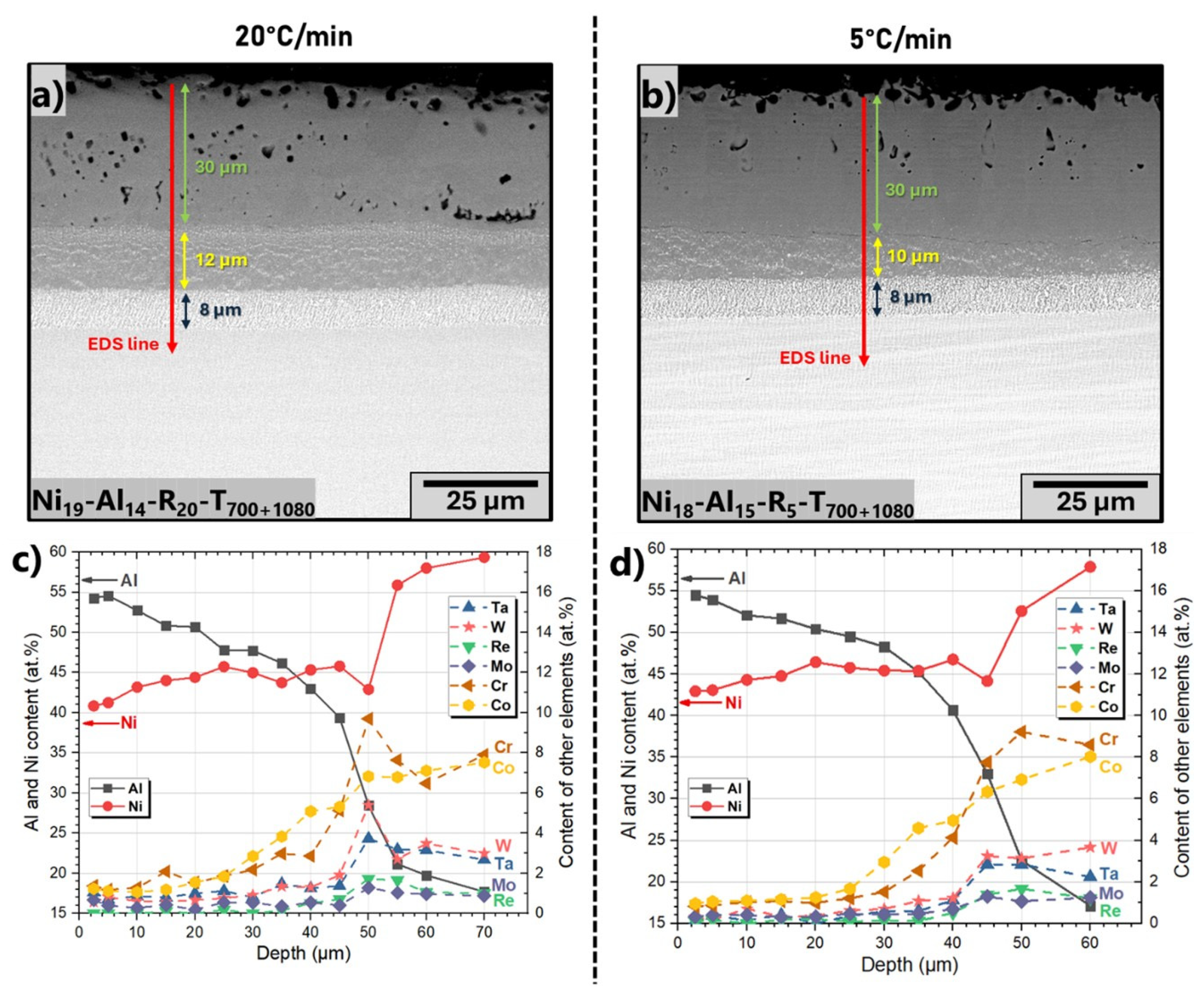 | Ni5-Al13-R20-T700+1080 | 5 ± 1 | 14 ± 1 | 20 | 700 °C/1 h +1080 °C/1 h |