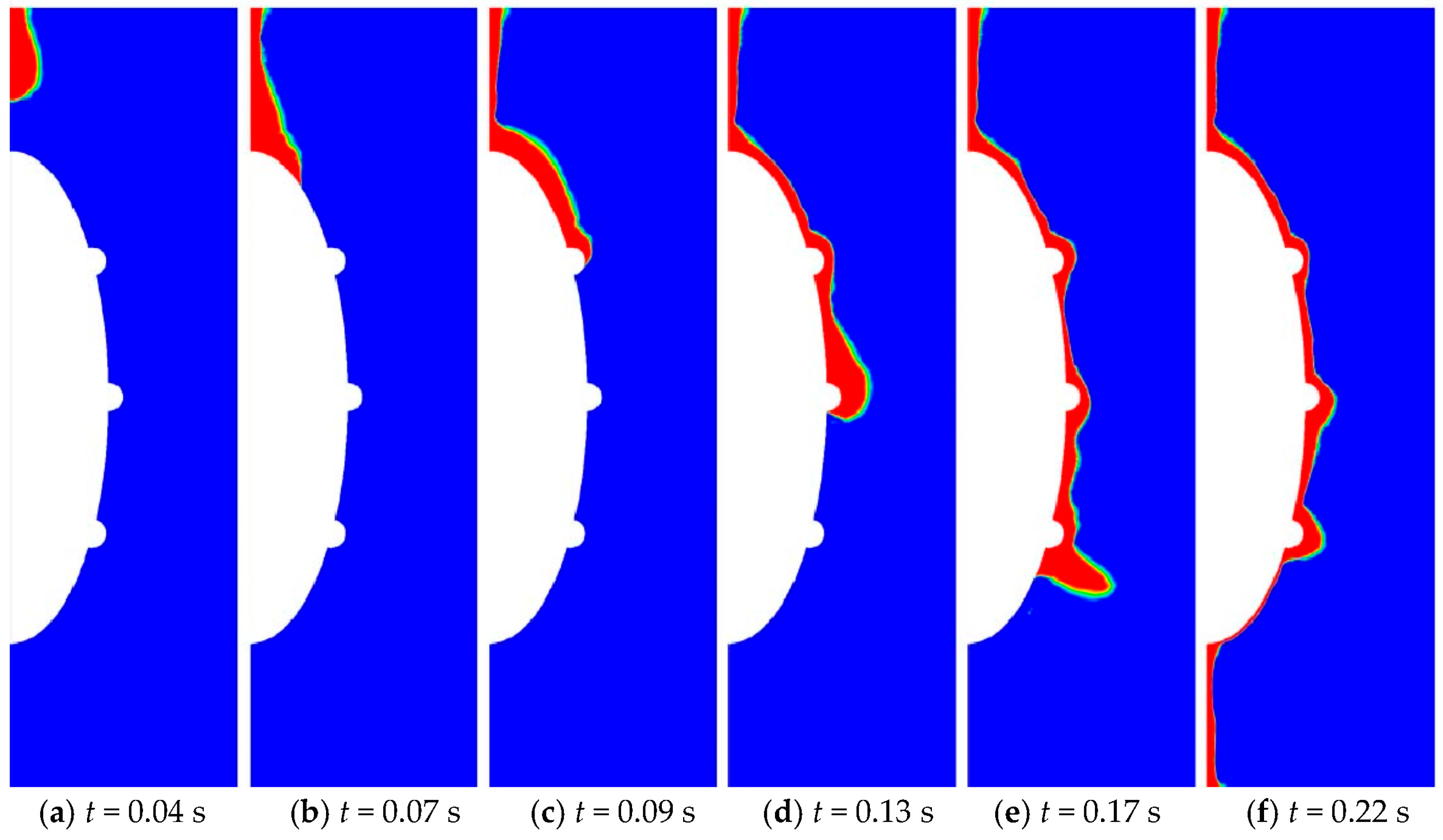 - Zhang, H.; Liu, J.; Li, Y.; Zhou, Y. Experimental and numerical investigation on the temporal and spatial distribution of liquid film thickness over a half-oval tube. Energy Build. 2023, 296, 113402. [Google Scholar] [CrossRef]