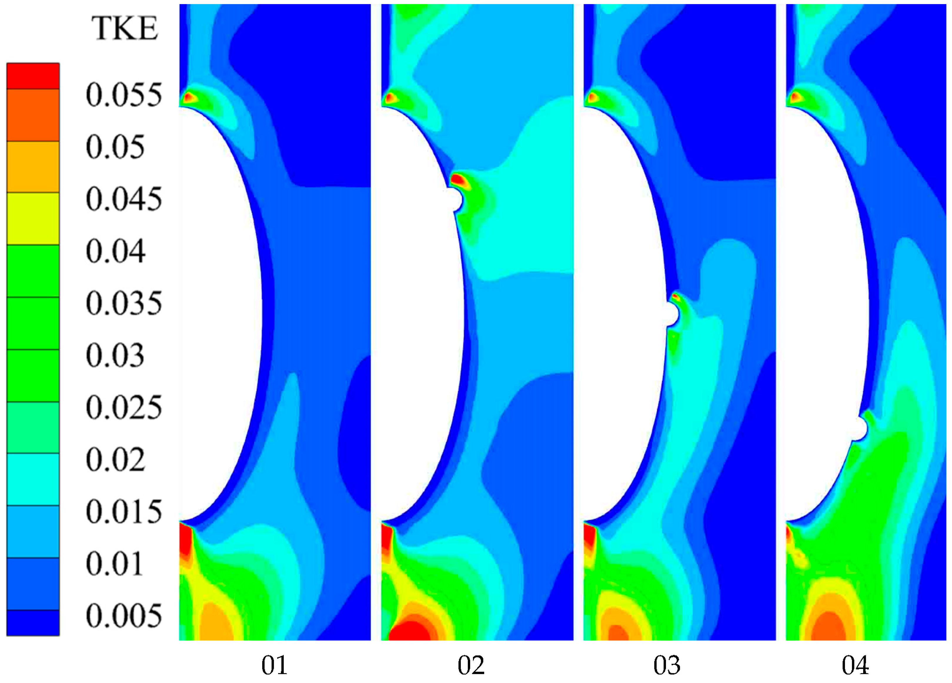 4.2. The Influence of Protrusion Position on Heat Transfer Performance