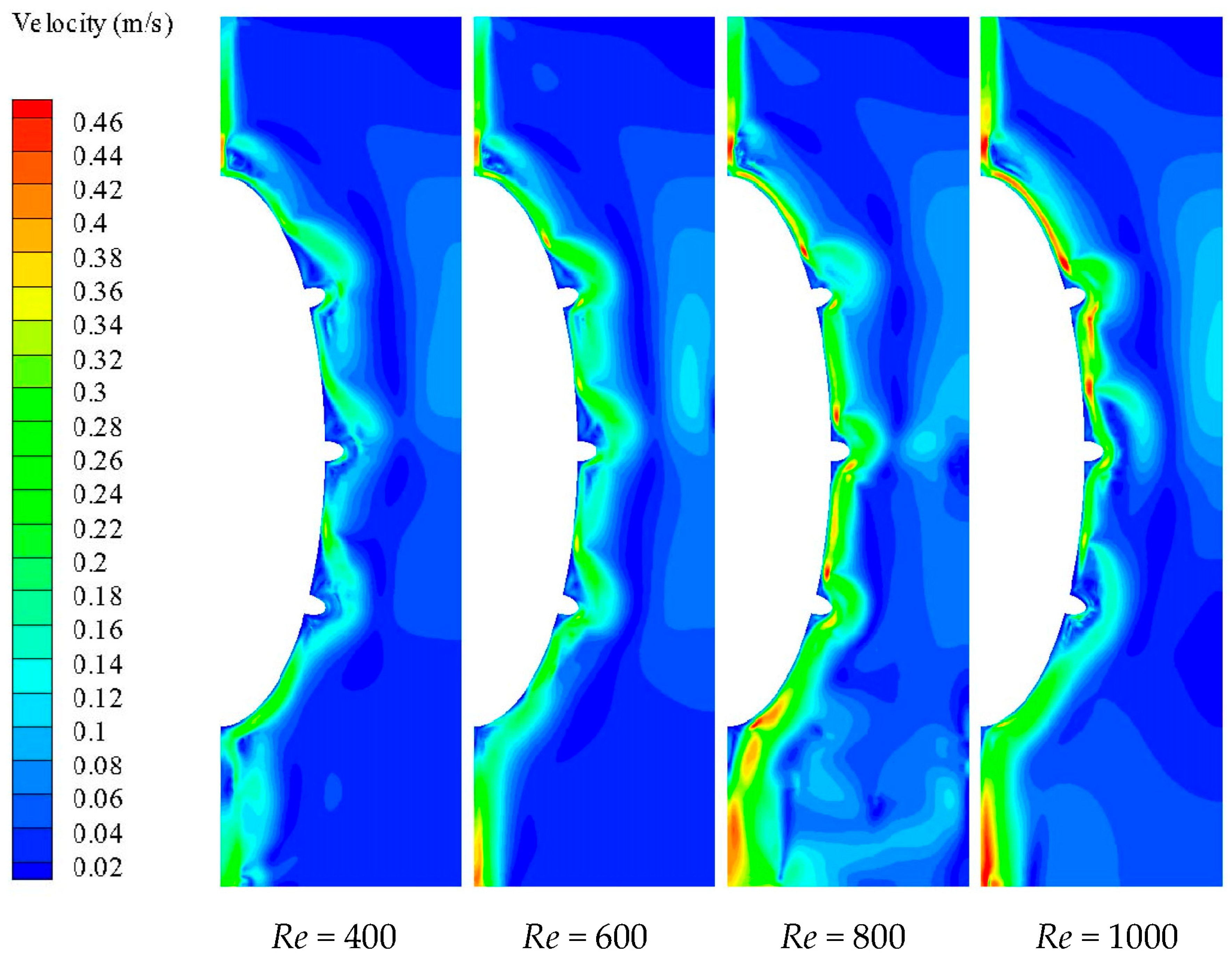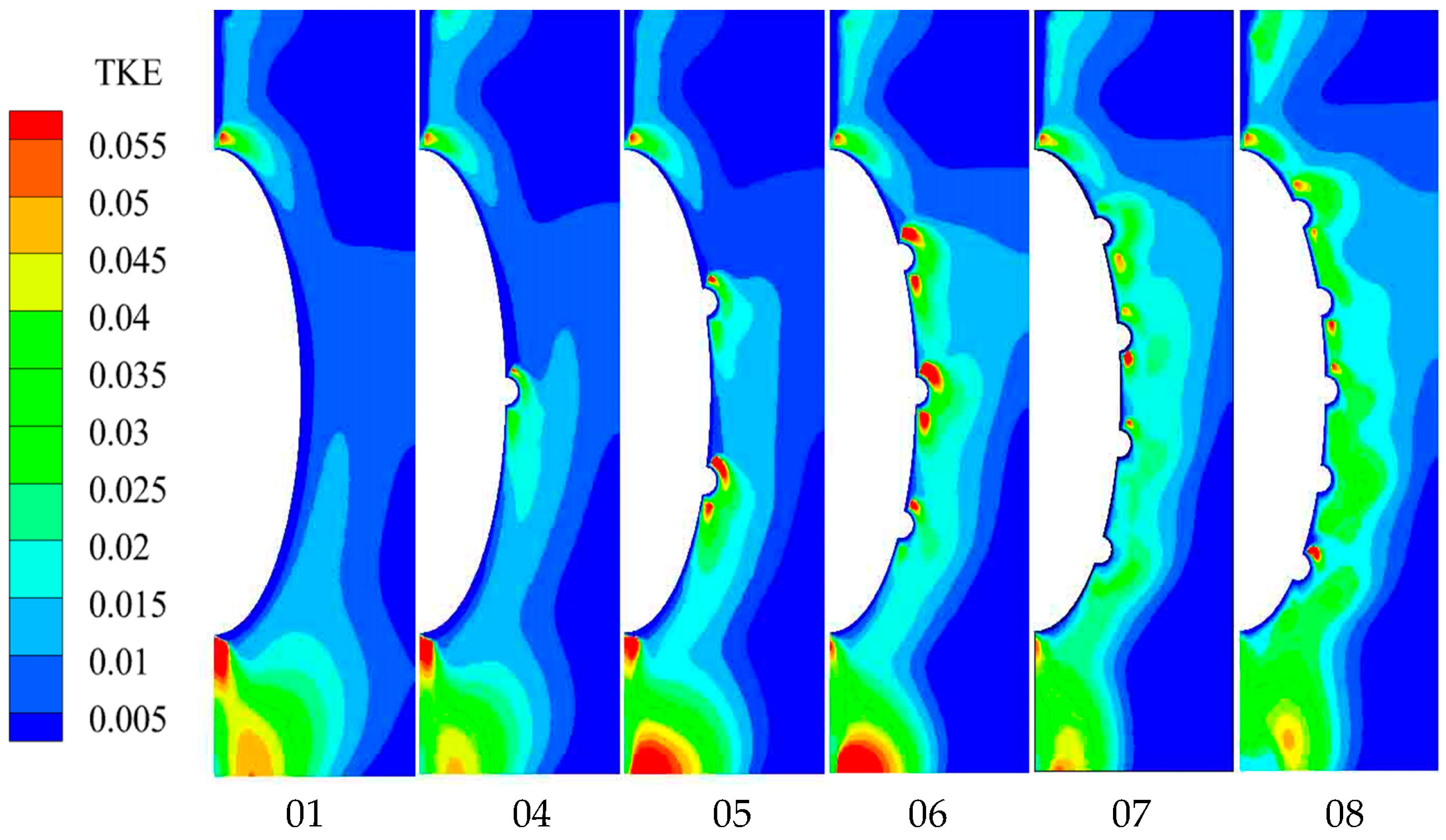 4.4. The Effect of the Number of Protruding Structures on Heat Transfer