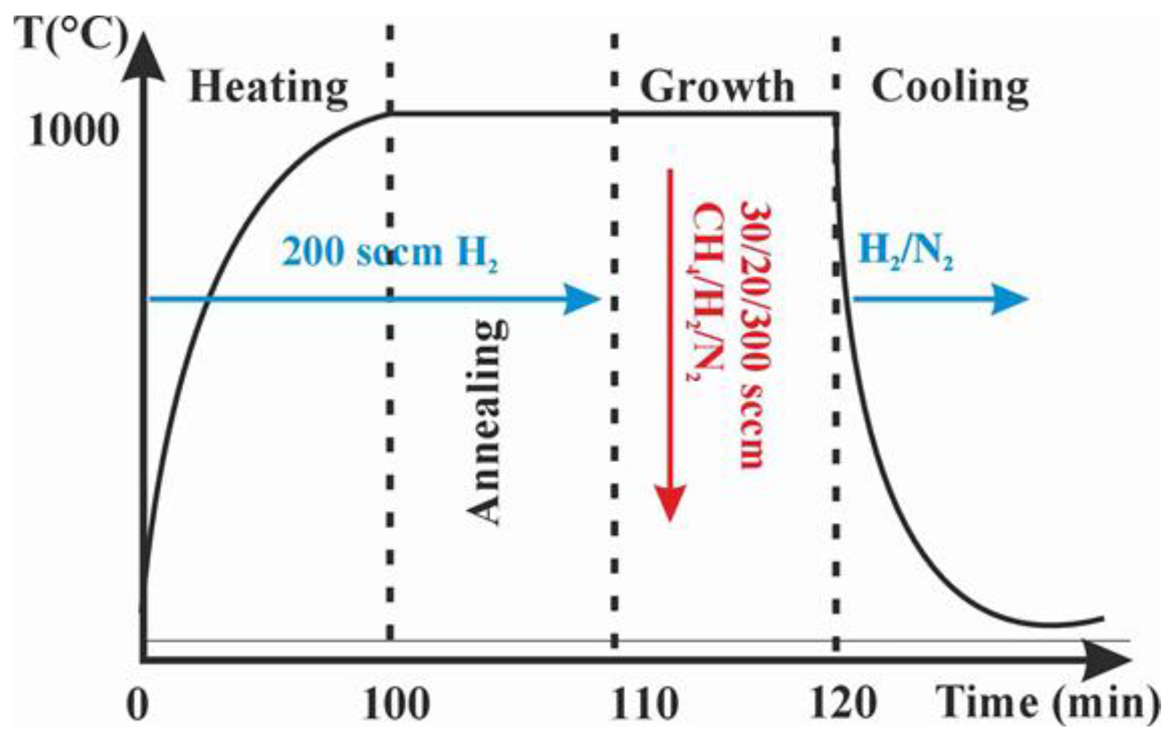 - Li, X.; Cai, W.; An, J.; Kim, S.; Nah, J.; Yang, D.; Piner, R.; Velamakanni, A.; Jung, I.; Tutuc, E.; et al. Large-area synthesis of high-quality and uniform graphene films on copper foils. Science 2009, 324, 1312–1314. [Google Scholar] [CrossRef] [PubMed]