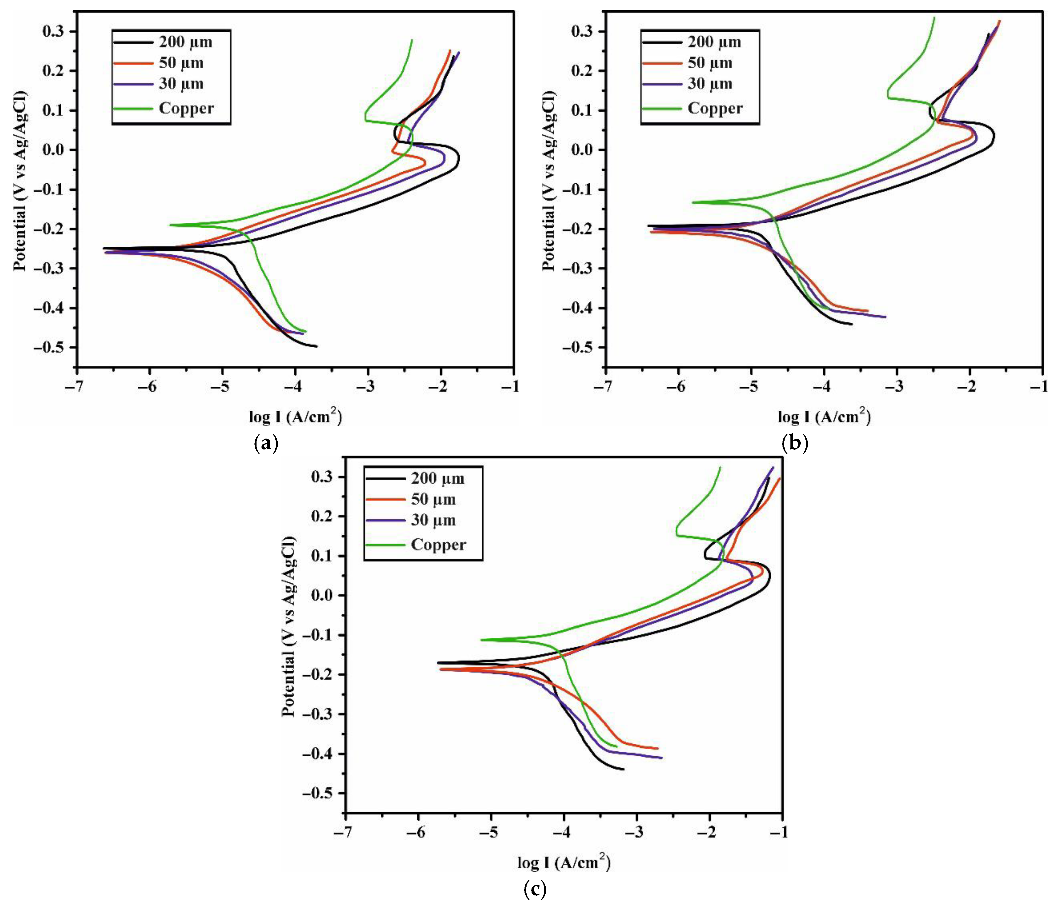 APA StyleNakysbekov, Z., Zhumadilov, B., Partizan, G., Medyanova, B., Ismailov, D., Grichshenko, V., Akhmetsadyk, D., Aliyev, B., & Mustafa, L. (2025). Enhanced Corrosion Protection of Copper Using Nitrogen-Doped Graphene Coatings Synthesized by Chemical Vapor Deposition. Coatings, 15(11), 1345. https://doi.org/10.3390/coatings15111345