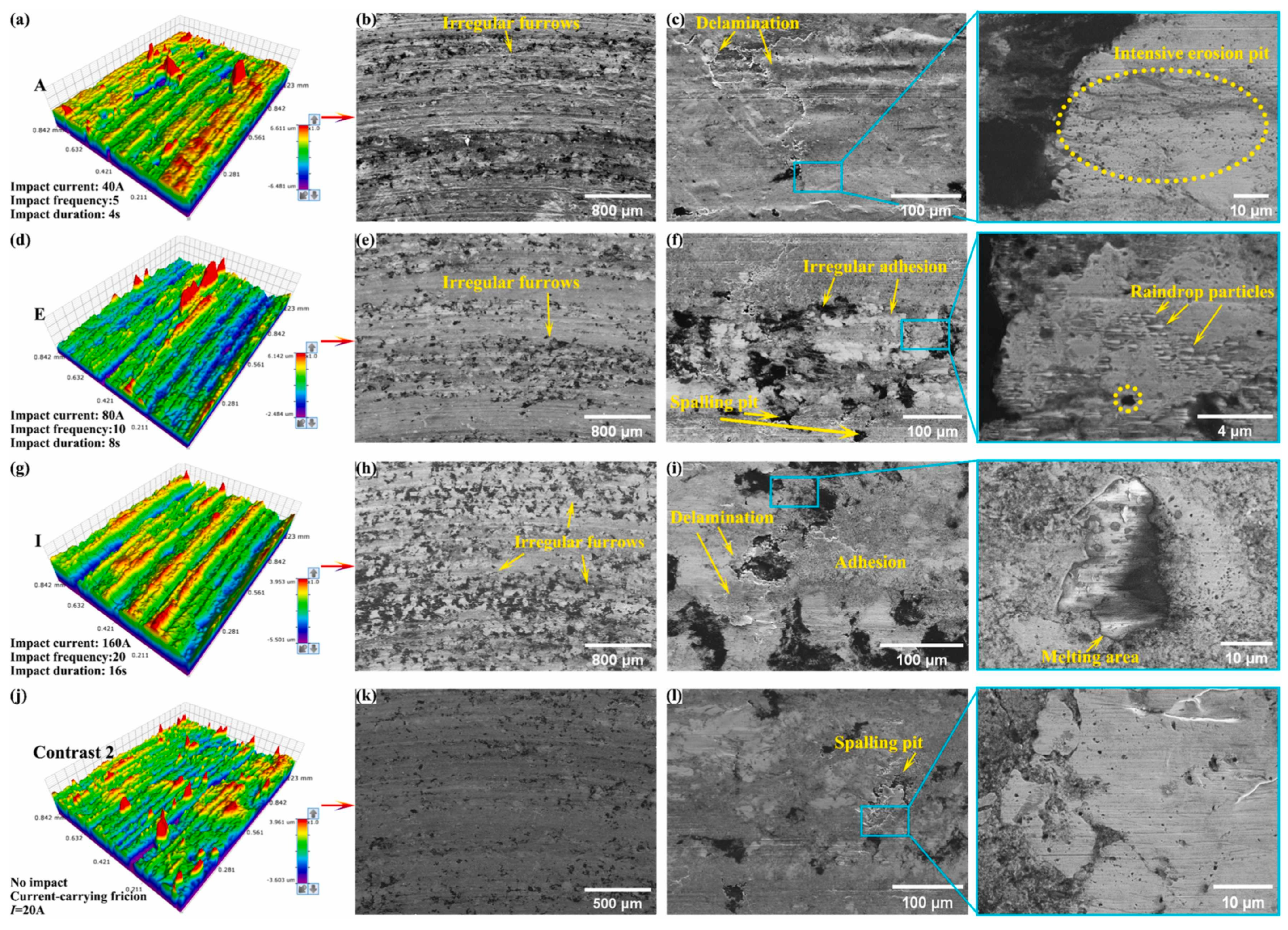 - Li, S.; Yang, X.; Kang, Y.; Li, Z.; Li, H. Progress on Current-Carry Friction and Wear: An Overview from Measurements to Mechanism. Coatings 2022, 12, 1345. [Google Scholar] [CrossRef]