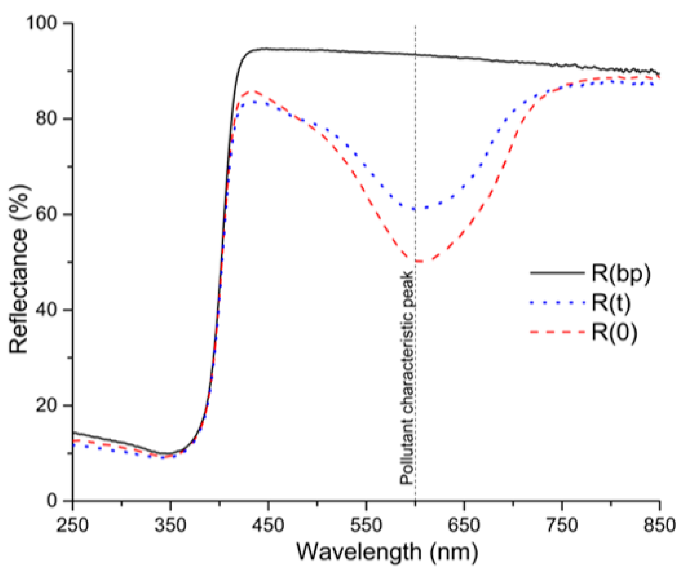- CIELAB color space and diffuse reflectance spectroscopy provided measurements on specific points of the sample surface, while digital image processing offered comprehensive pollutant degradation information from the entire specimen surface.