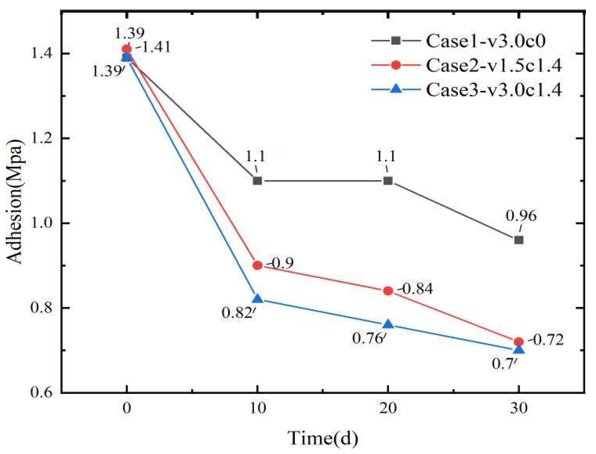- After three test cycles (30 days), sediment erosion caused a 49% reduction in coating adhesion strength, compared with only a 30% decrease under seawater flushing conditions. These results indicate that the presence of sediment substantially compromises coating adhesion and exacerbates surface damage.