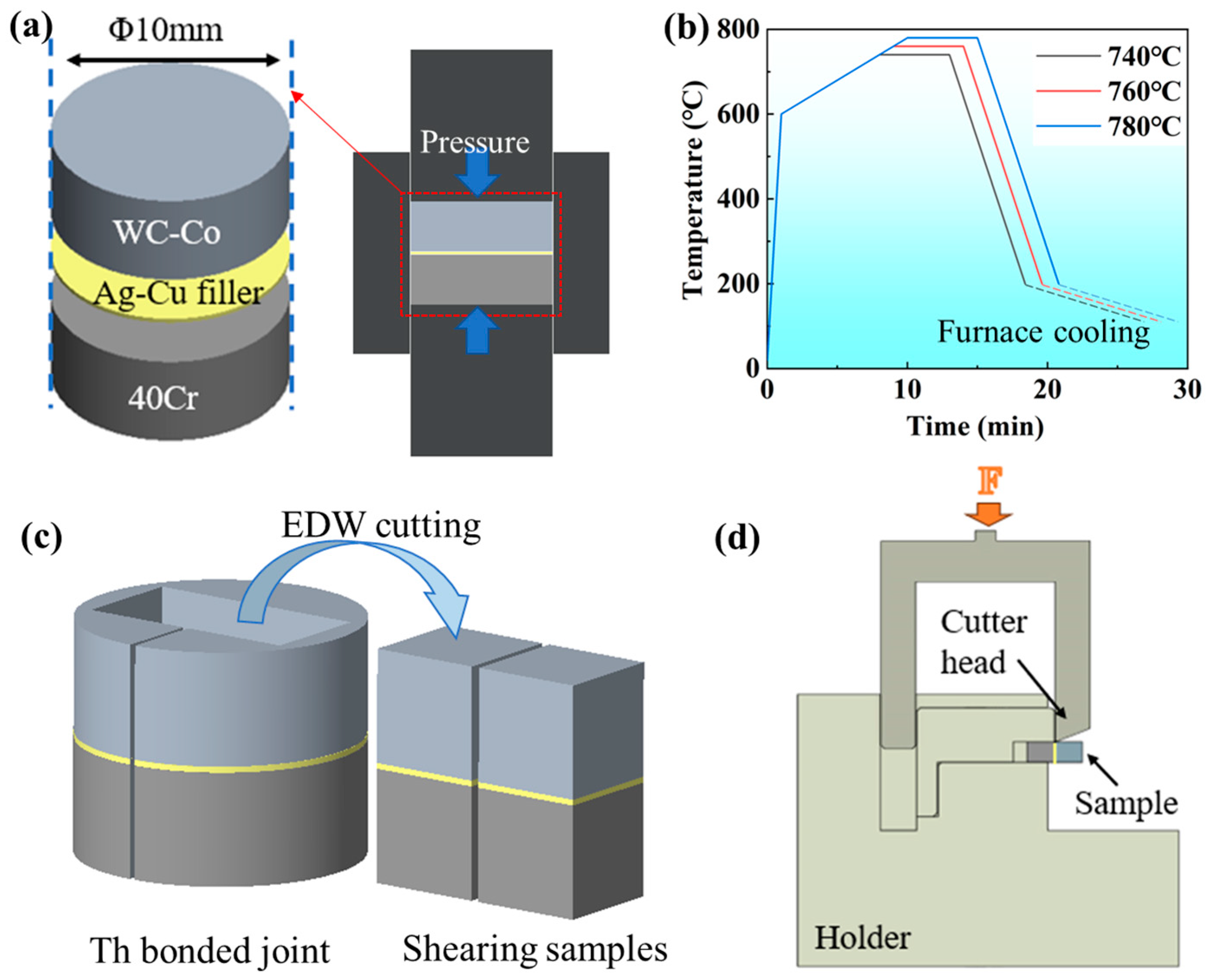 - Jiang, C.; Chen, H.; Wang, Q.Y.; Li, Y.X. Effect of brazing temperature and holding time on joint properties of induction brazed WC-Co/carbon steel using Ag-based alloy. J. Mater. Process. Technol. 2016, 229, 562–569. [Google Scholar] [CrossRef]