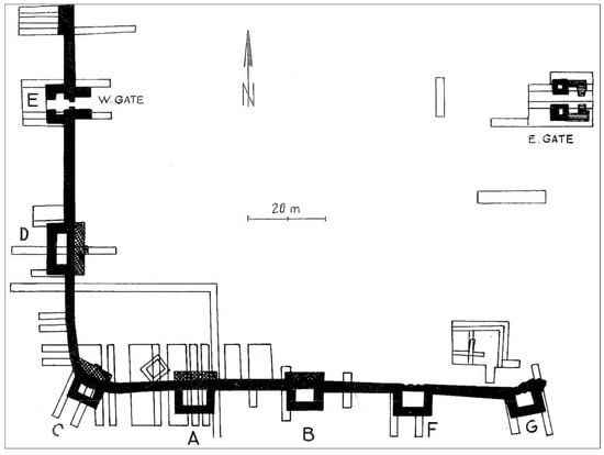 The towers and gates of the Sacidava fortress (noted as A to G) (SCORPAN 1977 [], with permission).