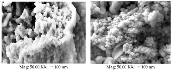 Scanning electron microscopy (SEM) was visualized with the help of the FESEM-FIB (field-emission scanning electron microscope for electronics and focused ion beam) workstation Auriga model produced by Carl Zeiss SMT Oberkochen, Germany, by means of the secondary electron/ion detector (SESI) in the sample chamber for the topography/morphology of the surface of the analyzed samples. Scanning electron microscopy (SEM) and energy-dispersive X-ray spectroscopy (EDS) analyses were performed with a TESCAN VEGA3 LMU from the Tescan company, Brno–Kohoutovice, Czech Republic, this system being equipped with an Oxford X-act EDS detector, operating at 15–20 kV and a working distance of 10 mm. Samples were coated with a 5–7 nm Au/Pd film prior to imaging.
