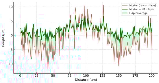 These microscopy technique data could be correlated with atomic force microscopy (AFM), which can offer useful information about topology and morphology, together with 3D profilometry of the hydroxyapatite (HAp) layers, which is used in this case for consolidating the visible mortars at the investigated towers [].