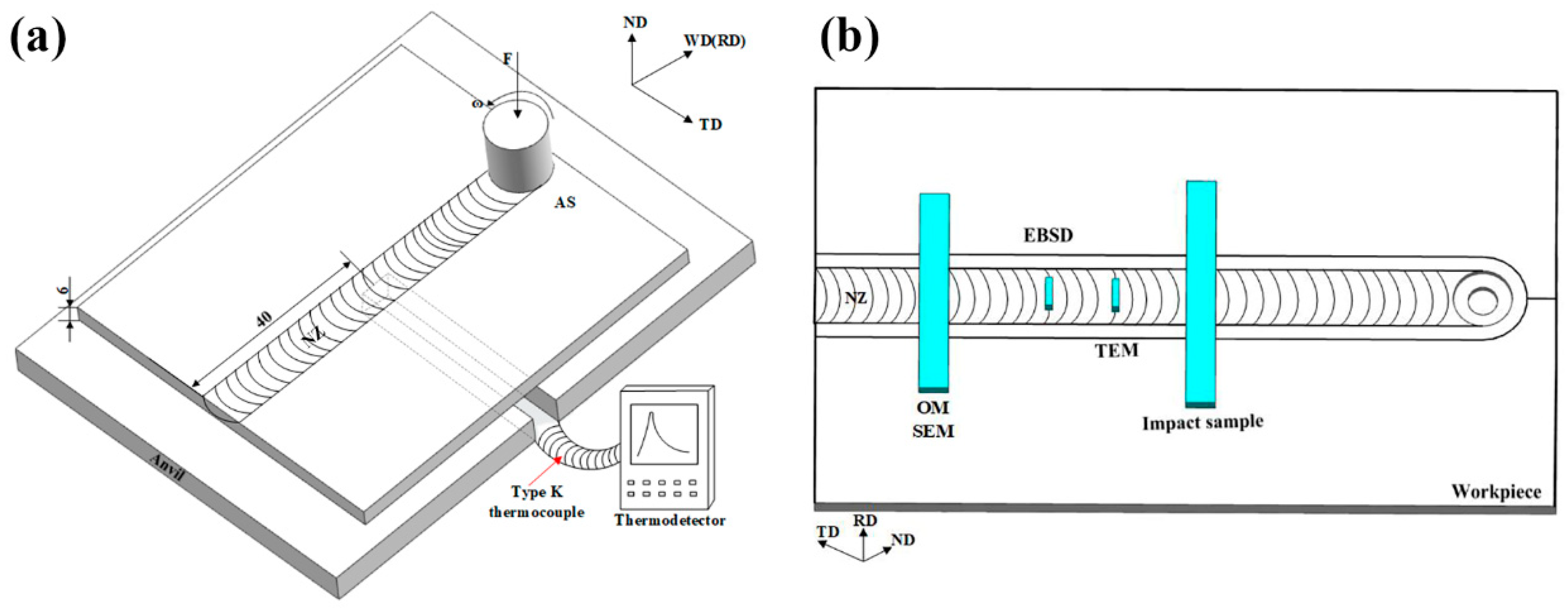 - Duan, R.H.; Liu, J.H.; Wang, Y.Q.; Chen, S.J.; Yang, Z.D.; Dong, Y.; Xie, G.M. Improved microstructure and mechanical properties of high strength pipeline steel joints via modulating rotation rate of friction stir welding. J. Mater. Sci. 2025, 60, 2658–2672. [Google Scholar] [CrossRef]