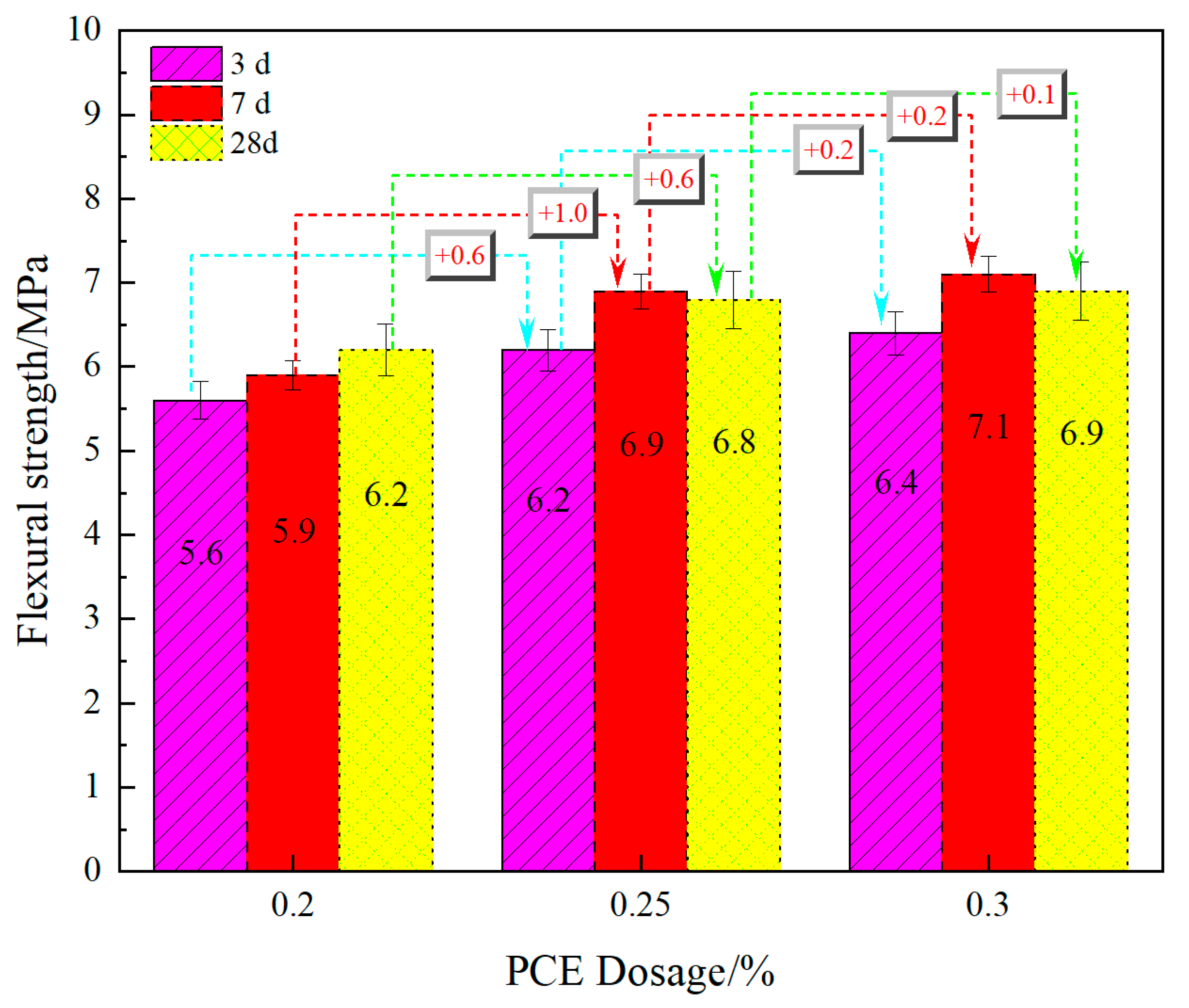 3.4. The Influence of PCE on the Mechanical Performance of SPC: A Focus on Flexural Strength