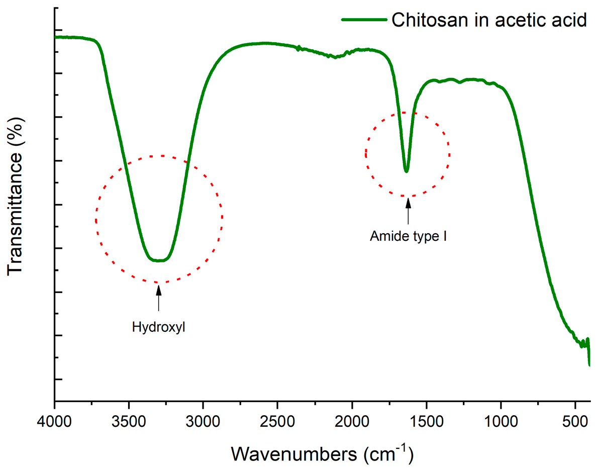 - El-Hafian, E.A.; Elgannoudi, E.S.; Mainal, A.; Yahaya, A.H.B. Characterization of Chitosan in Acetic Acid: Rheological and Thermal Studies. Turk. J. Chem. 2010, 34, 47–56. [Google Scholar] [CrossRef]