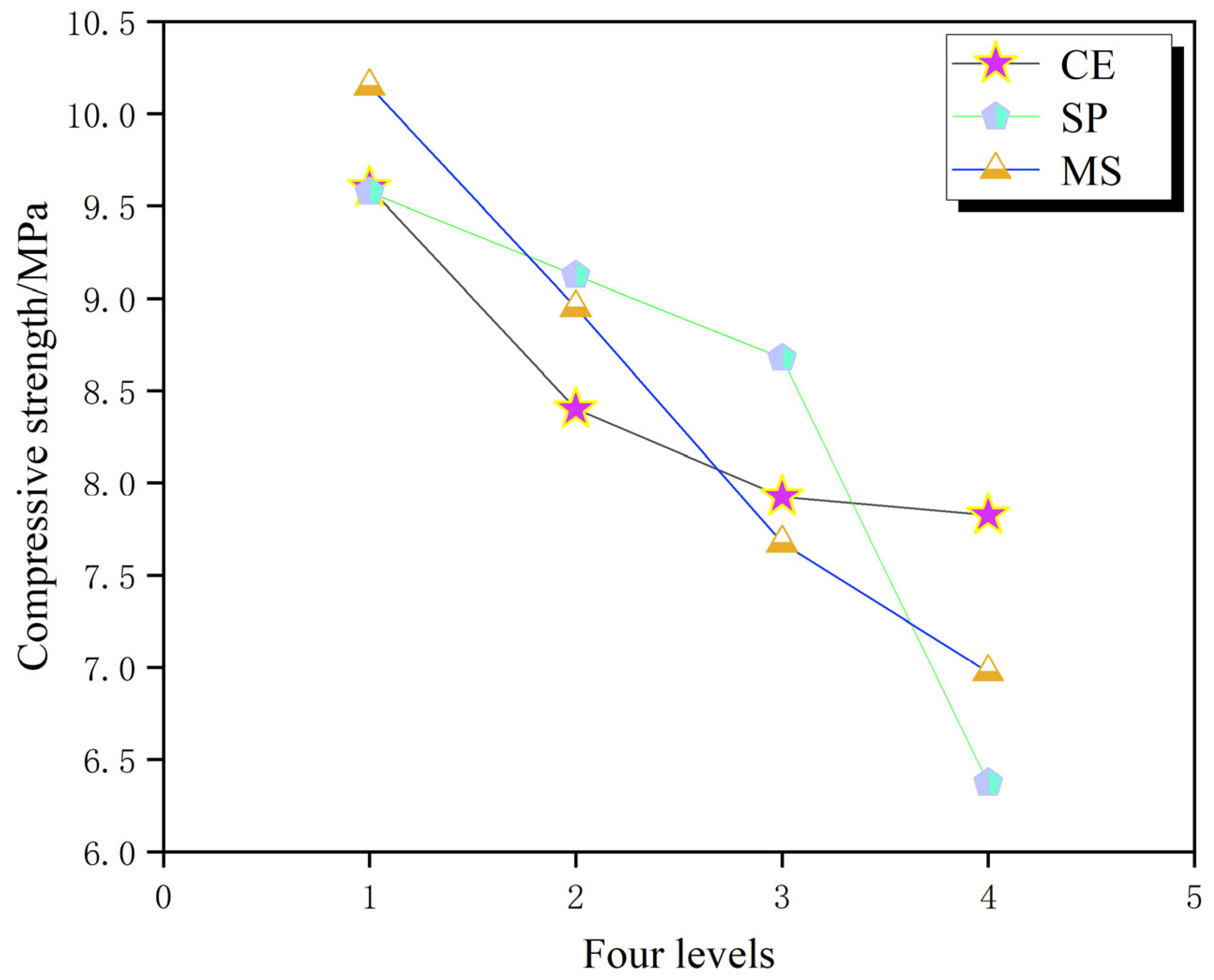 22]. The five factors considered were: cellulose ether content (CE), stone powder replacement ratio for cement (SP), manufactured sand replacement ratio for river sand (MS), PVA content (PVA), and bentonite content (BT). The levels for each factor, defined as the percentage by mass of the respective material, are detailed in