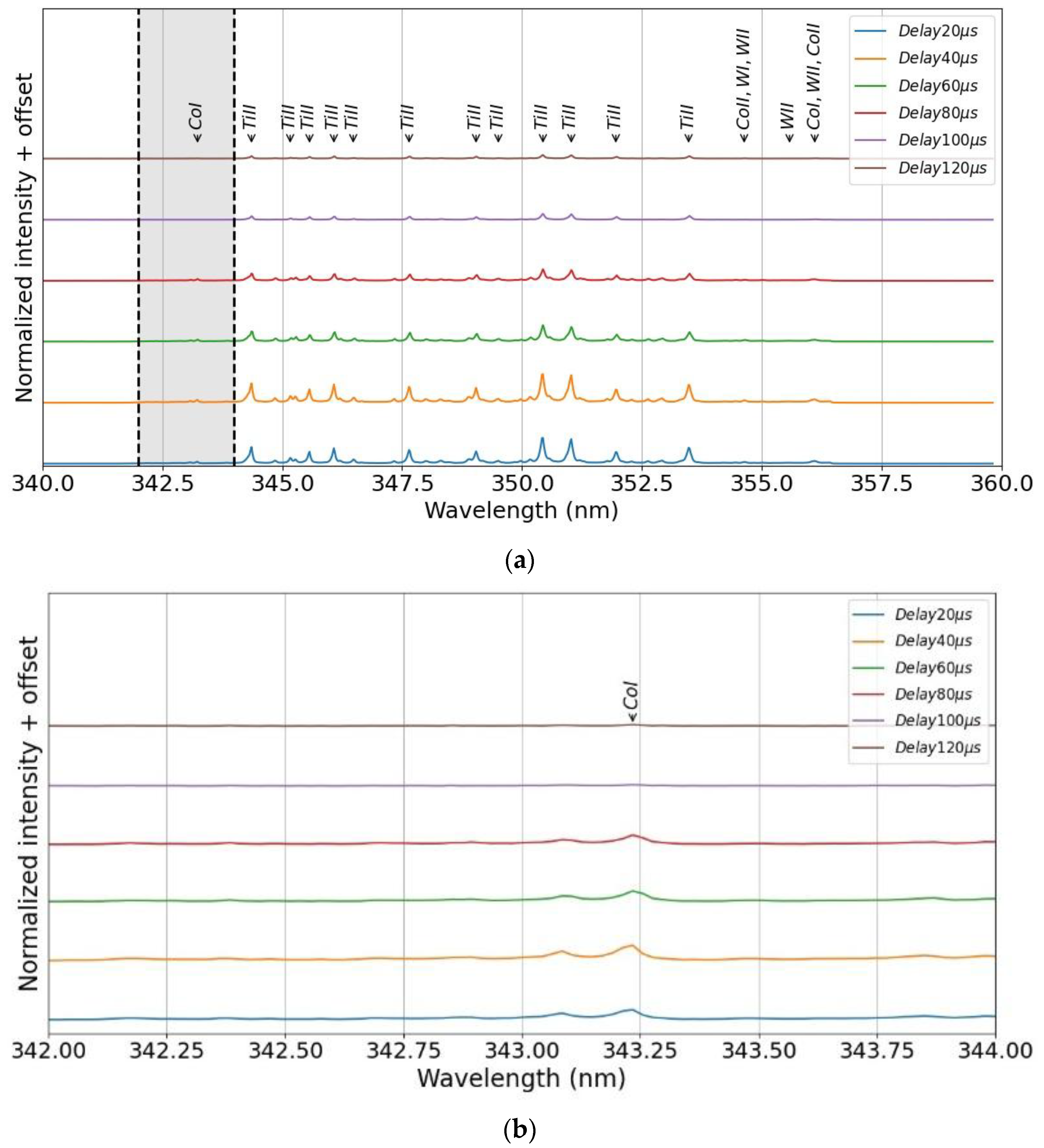 - Oxford Instruments Spectrometer Shamrock SR-500, Concord, MA, USA by Andor. Atomic spectrum varying energy and number of pulses with the following laser conditions: pulses 10-laser (variable energy) TD2-TI8, grid 2399l-nm, shutter 12 µm, ablations 10. Energy Signal 6 decreases to signal 1, from 120 to 20 delay.